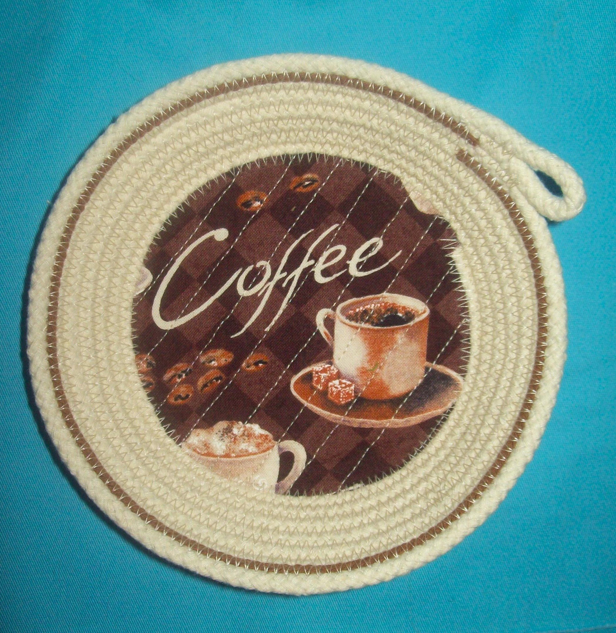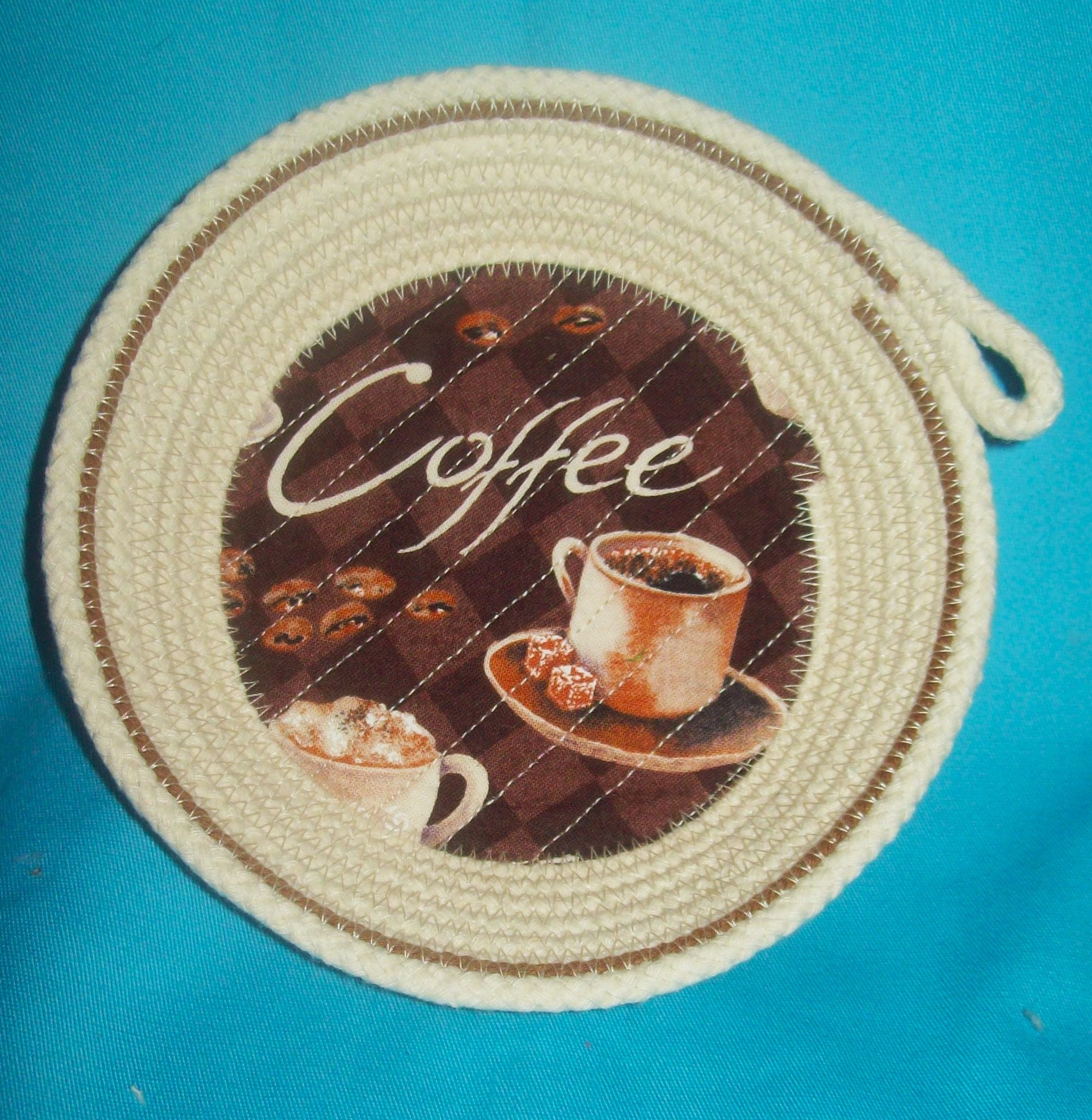 This small rope bowl, with the coffee fabric stitched to the bottom makes a great gift for a coffee enthusiast.