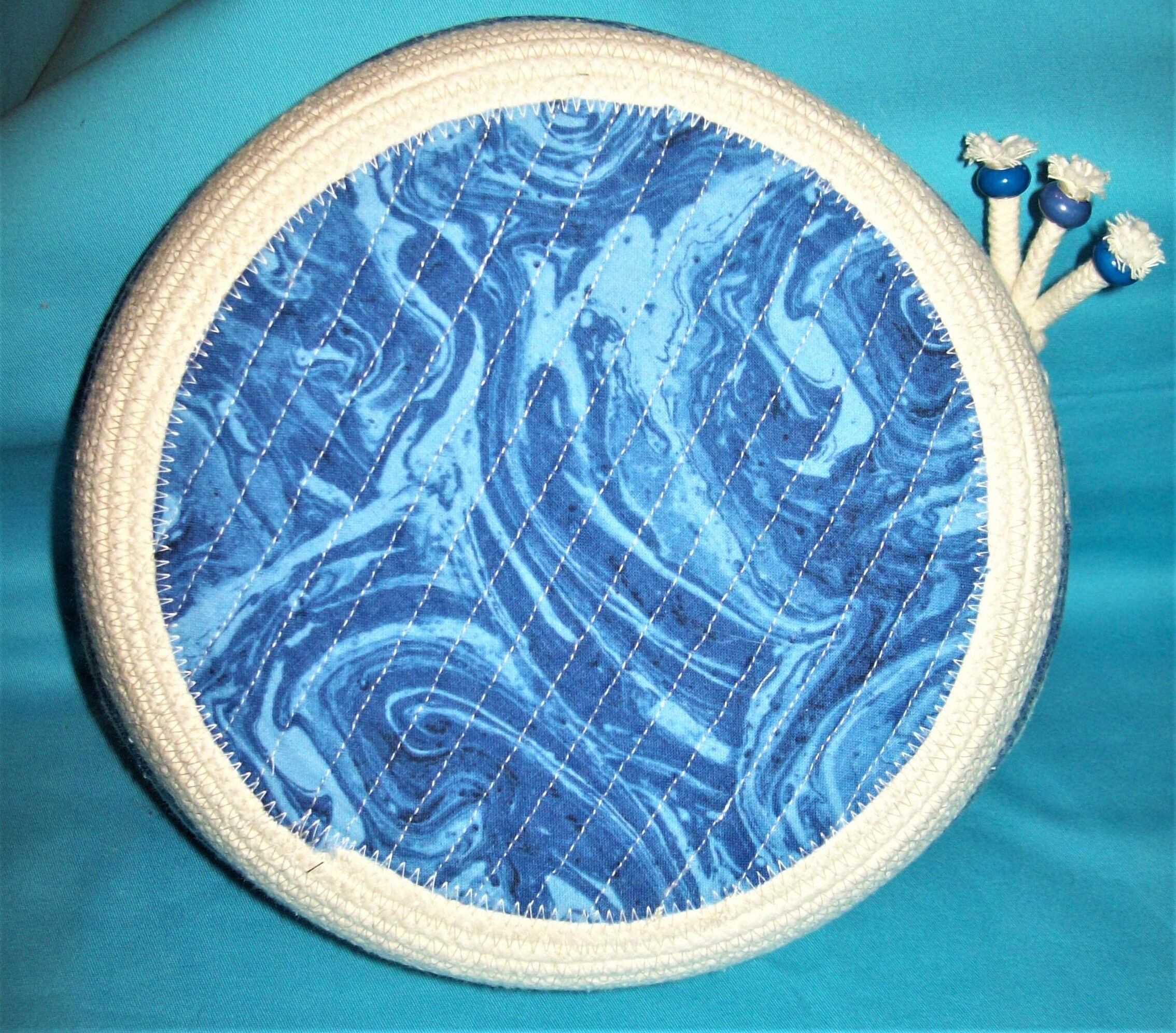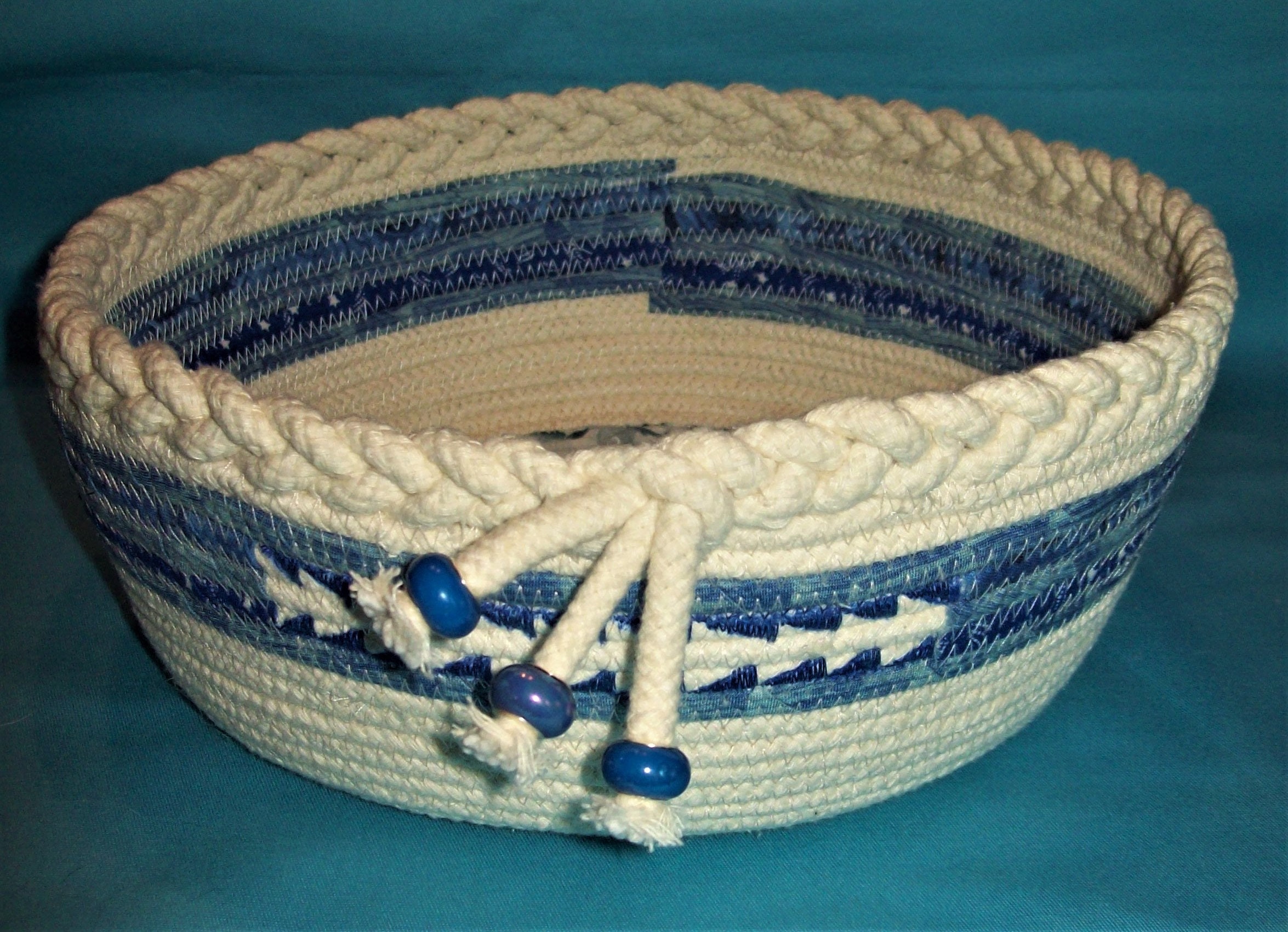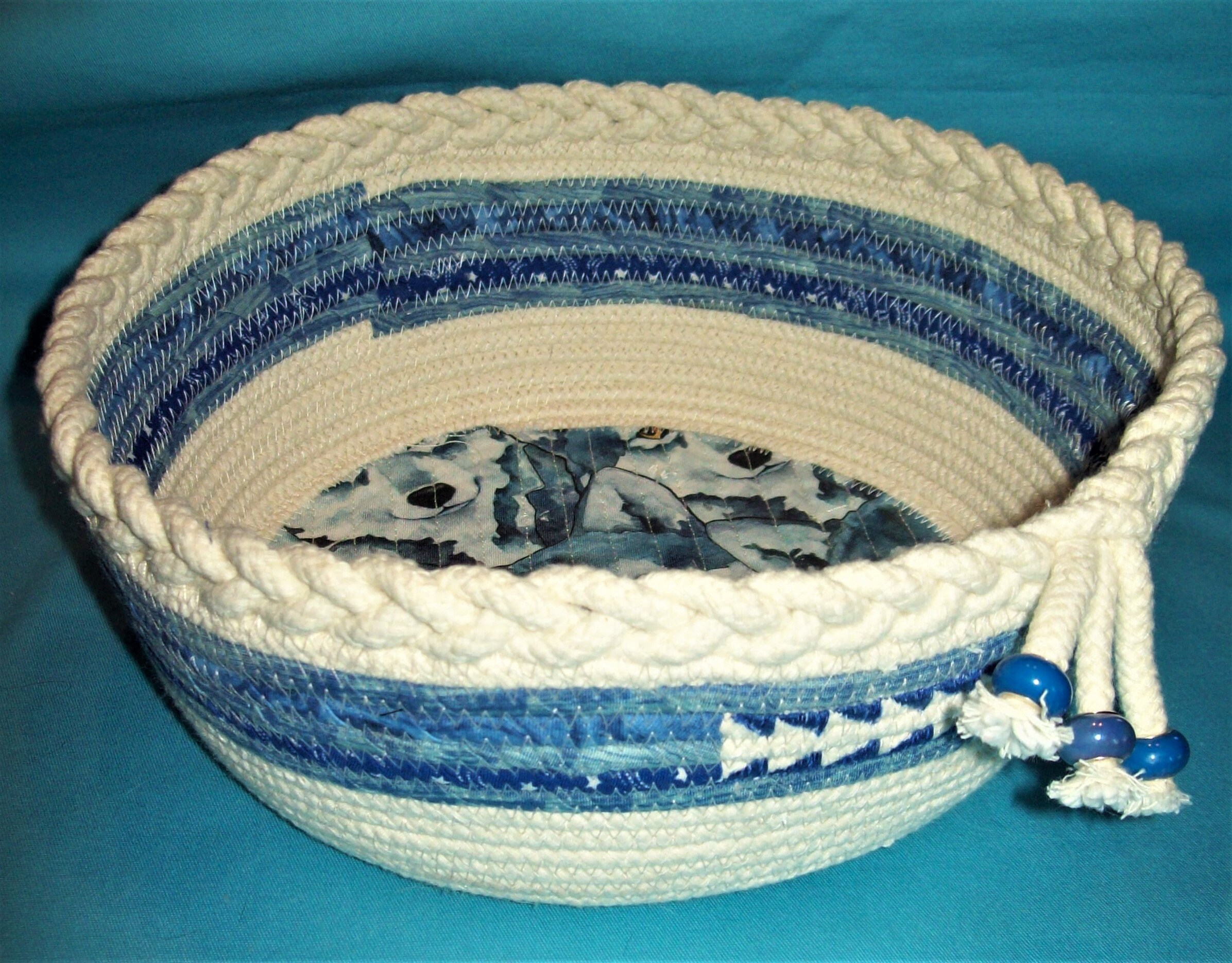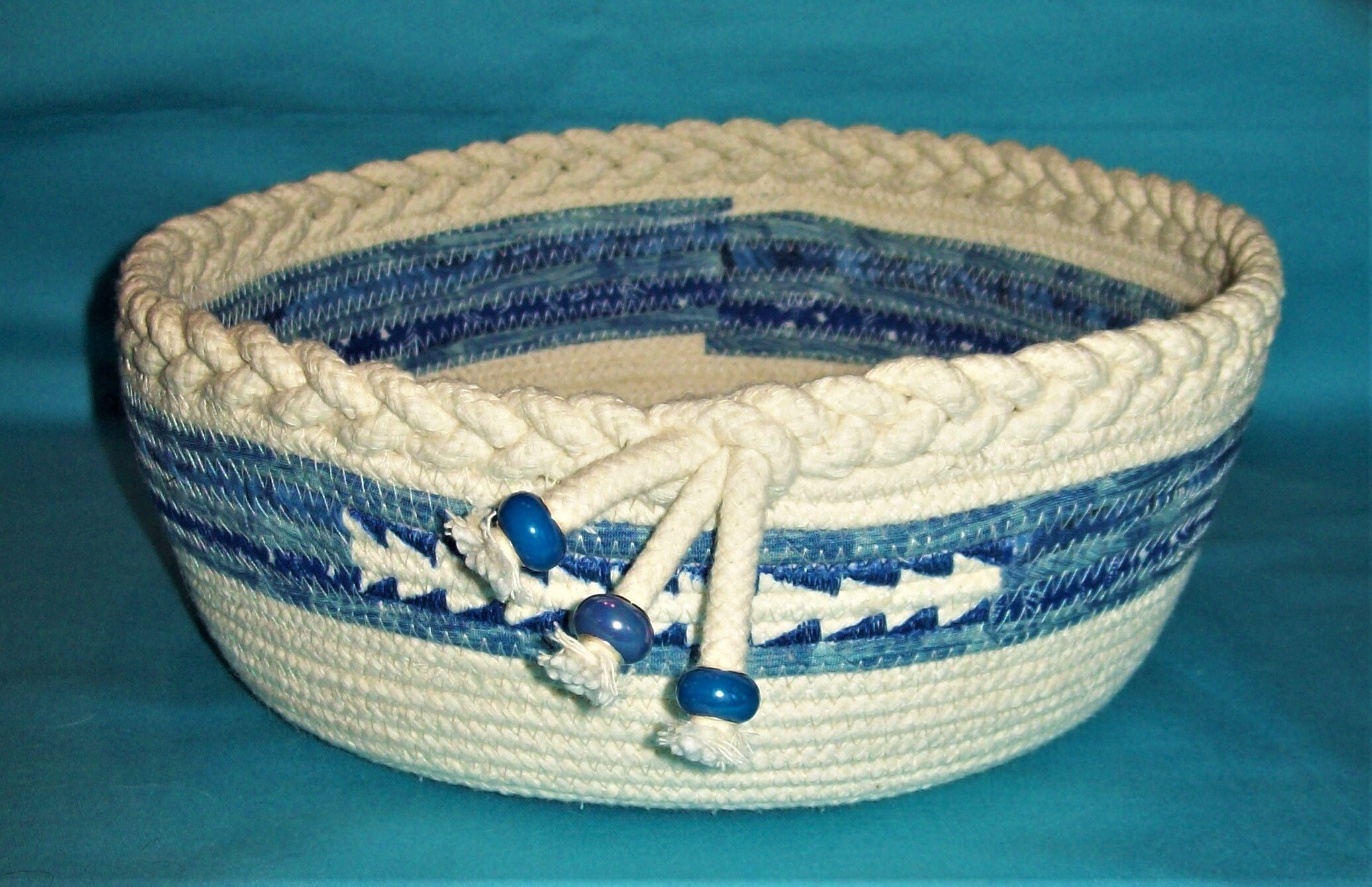 "Blue Wolf Rope Bowl" SIZE: 10" rim, 7 1/2" base, 4" tall