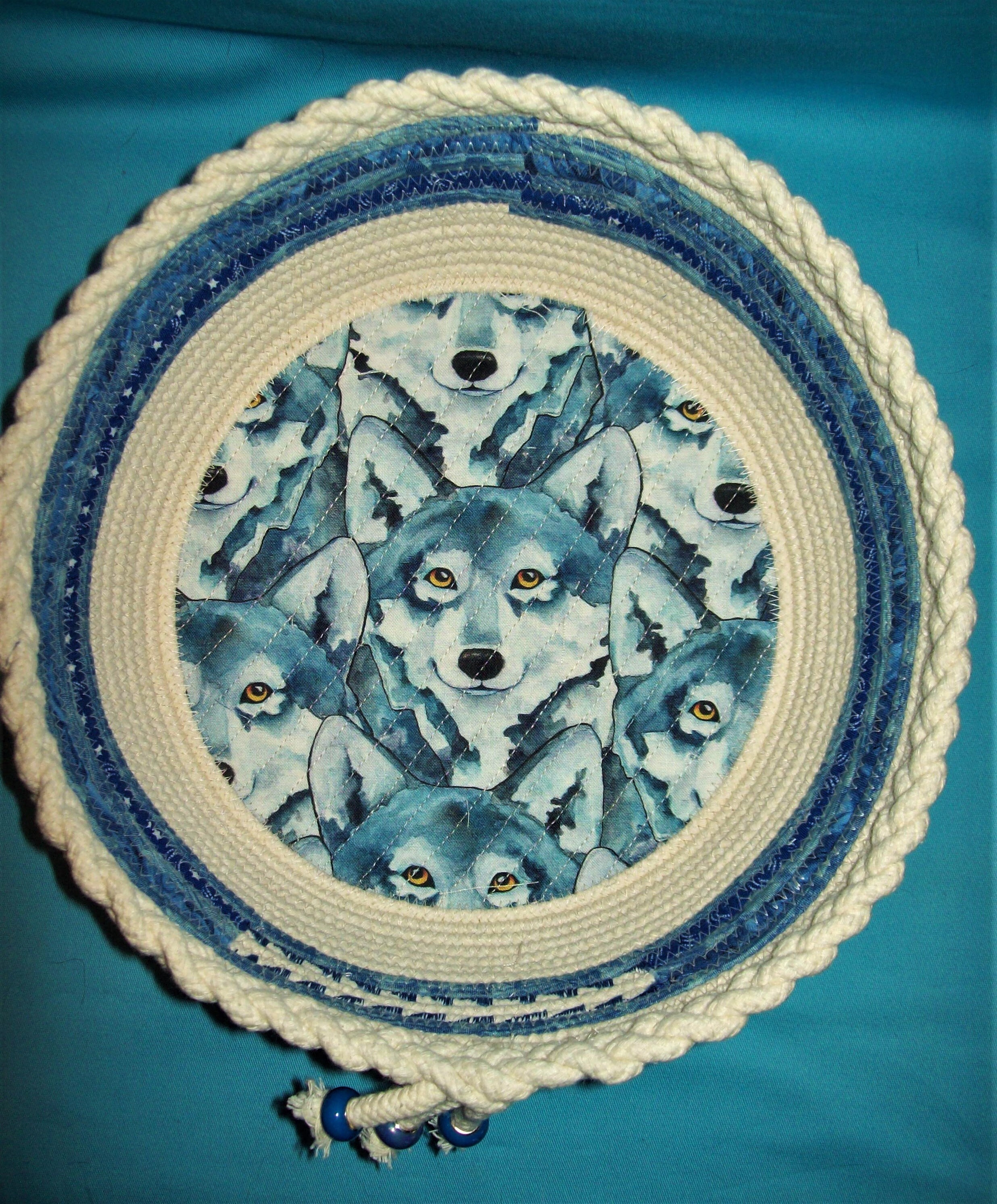 Wolf Rope Bowl-Coiled Basket-Wolf Decorative Fabric Bowl-Handmade Gift Bowl-fabric wrapped basket-Montana Hand Crafted