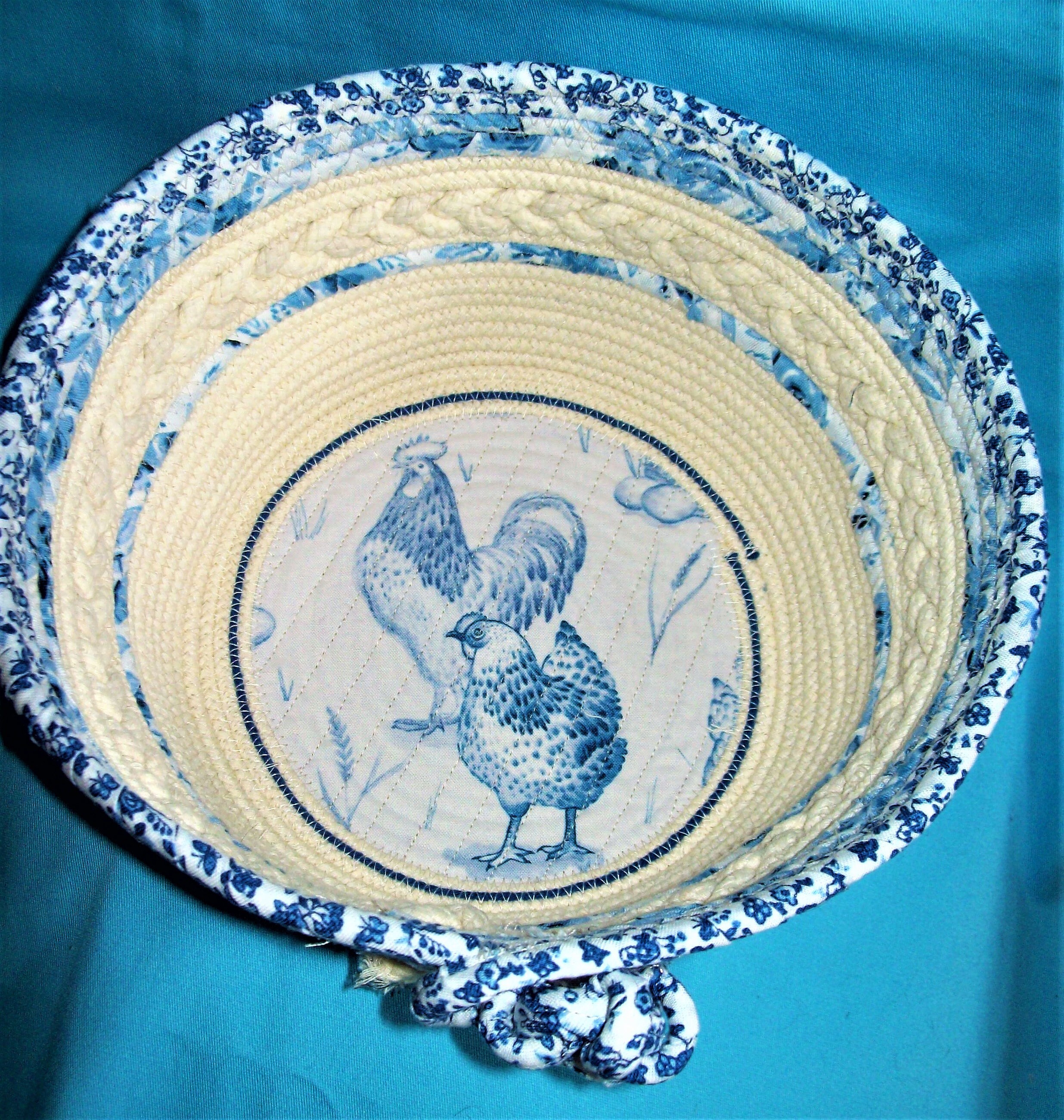 "Chickens Rope Bowl" SIZE: 9" rim, 6" base, 5" tall