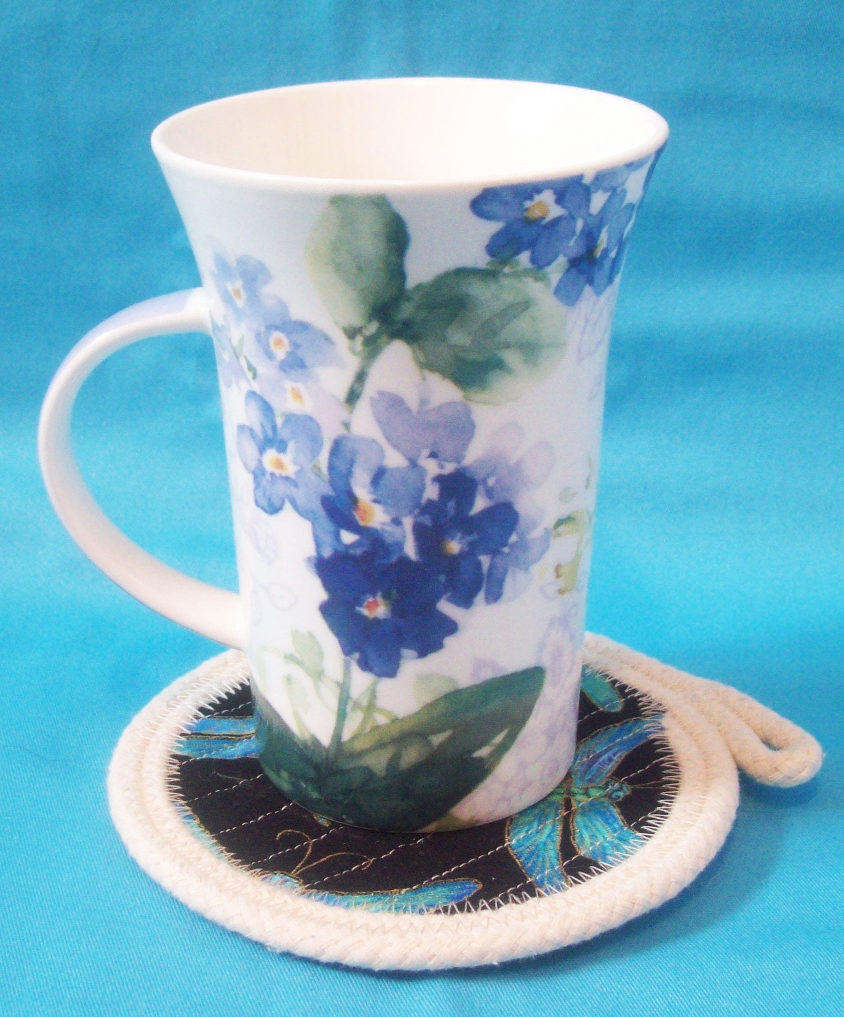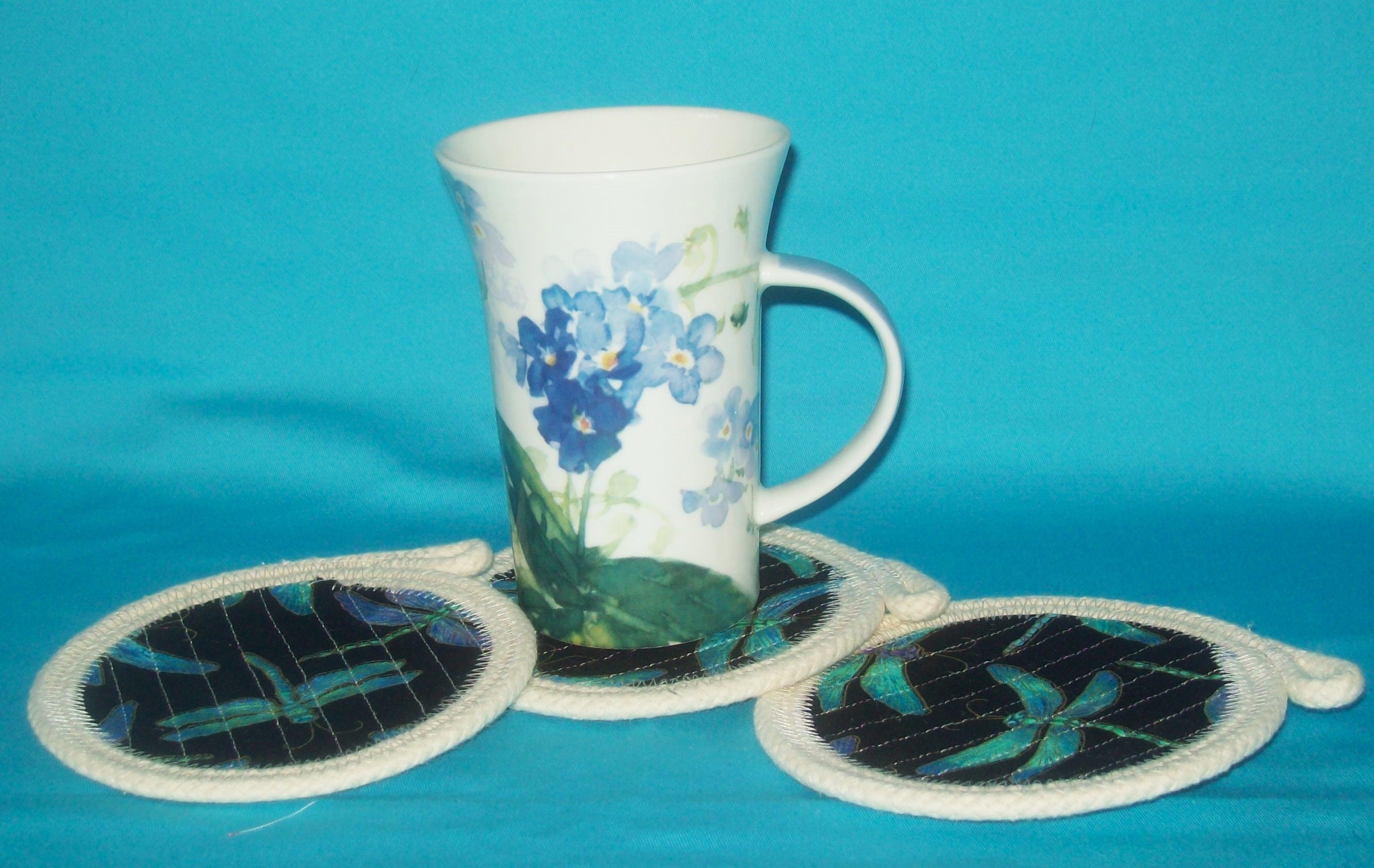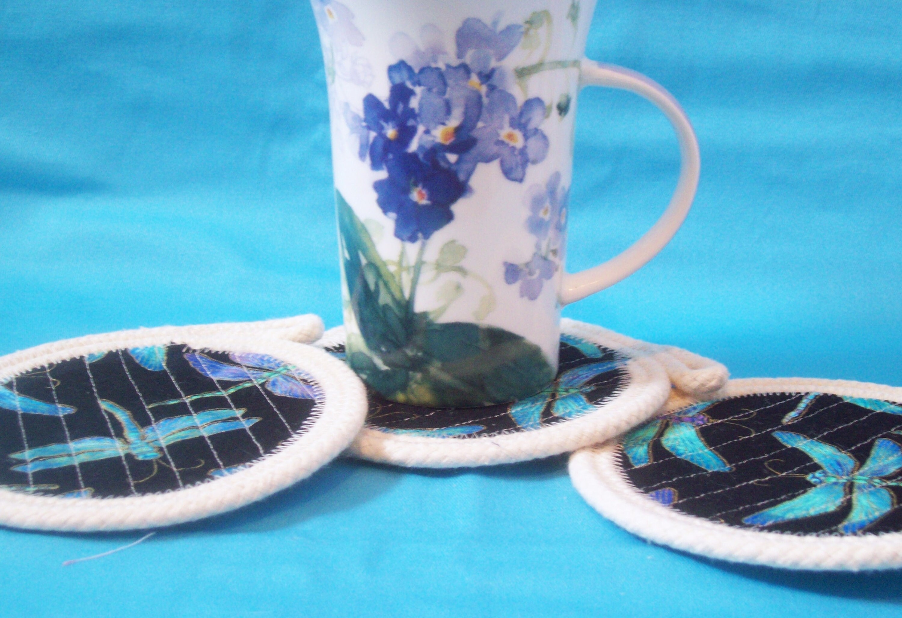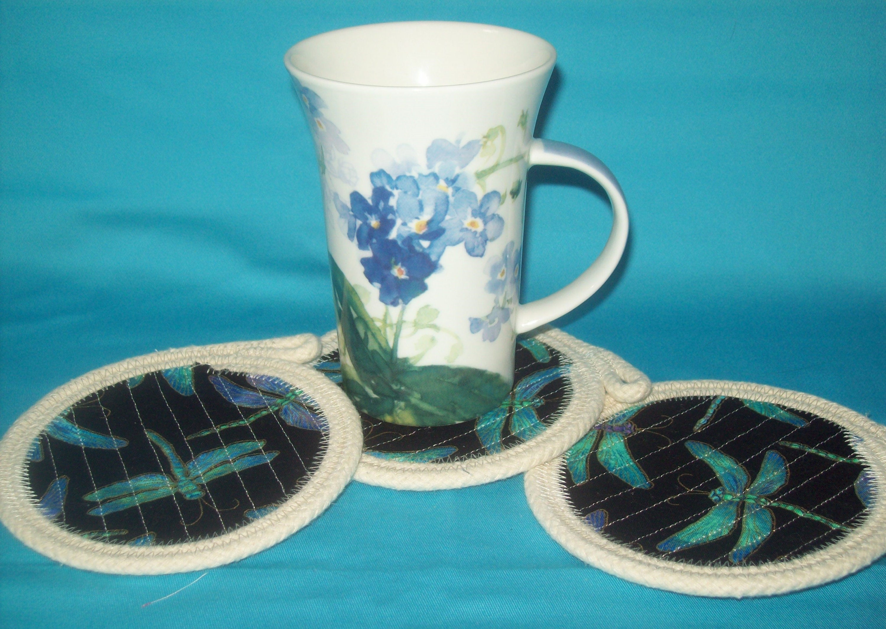 * I have sewn them in a generous size as to fit any mug or glass. This shows off the design even with the glass in place.