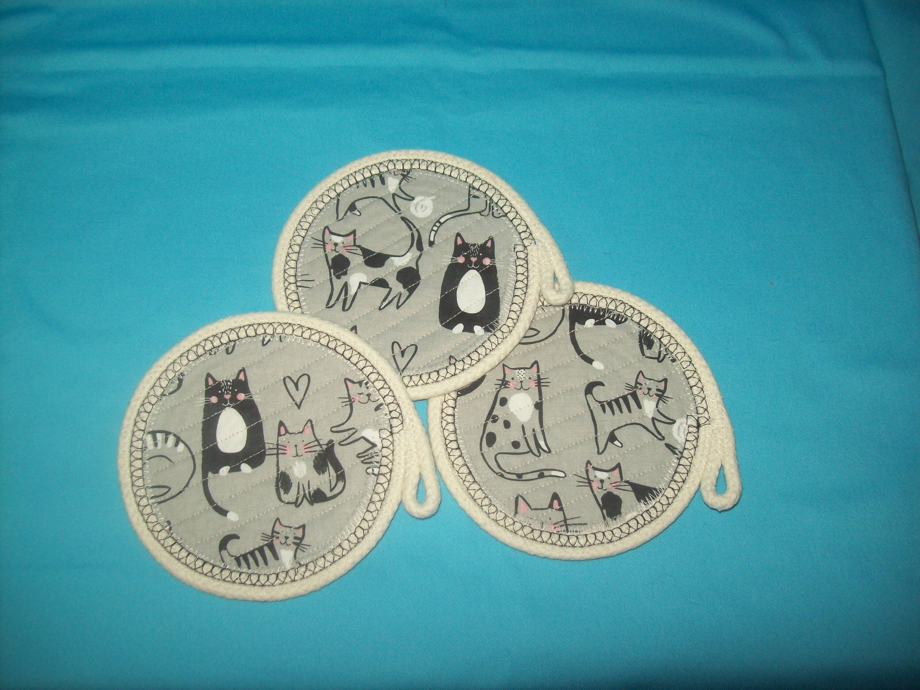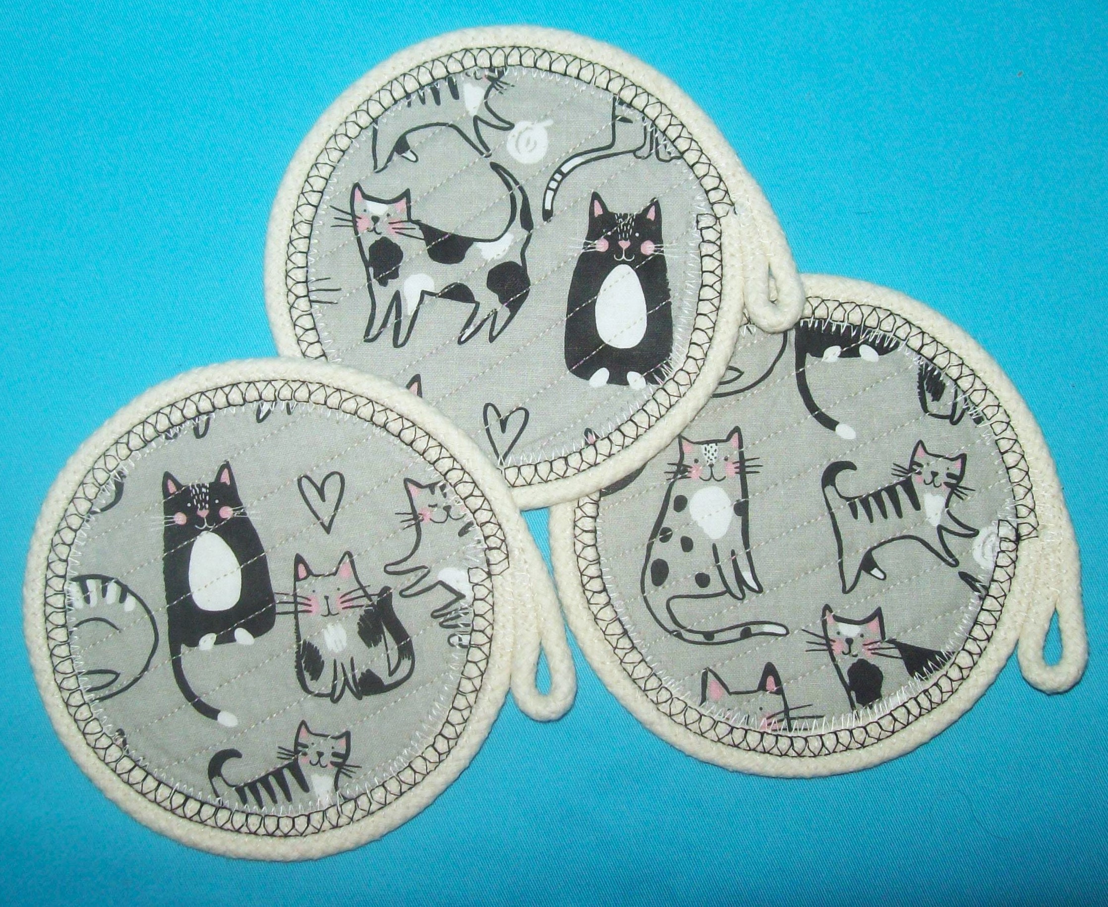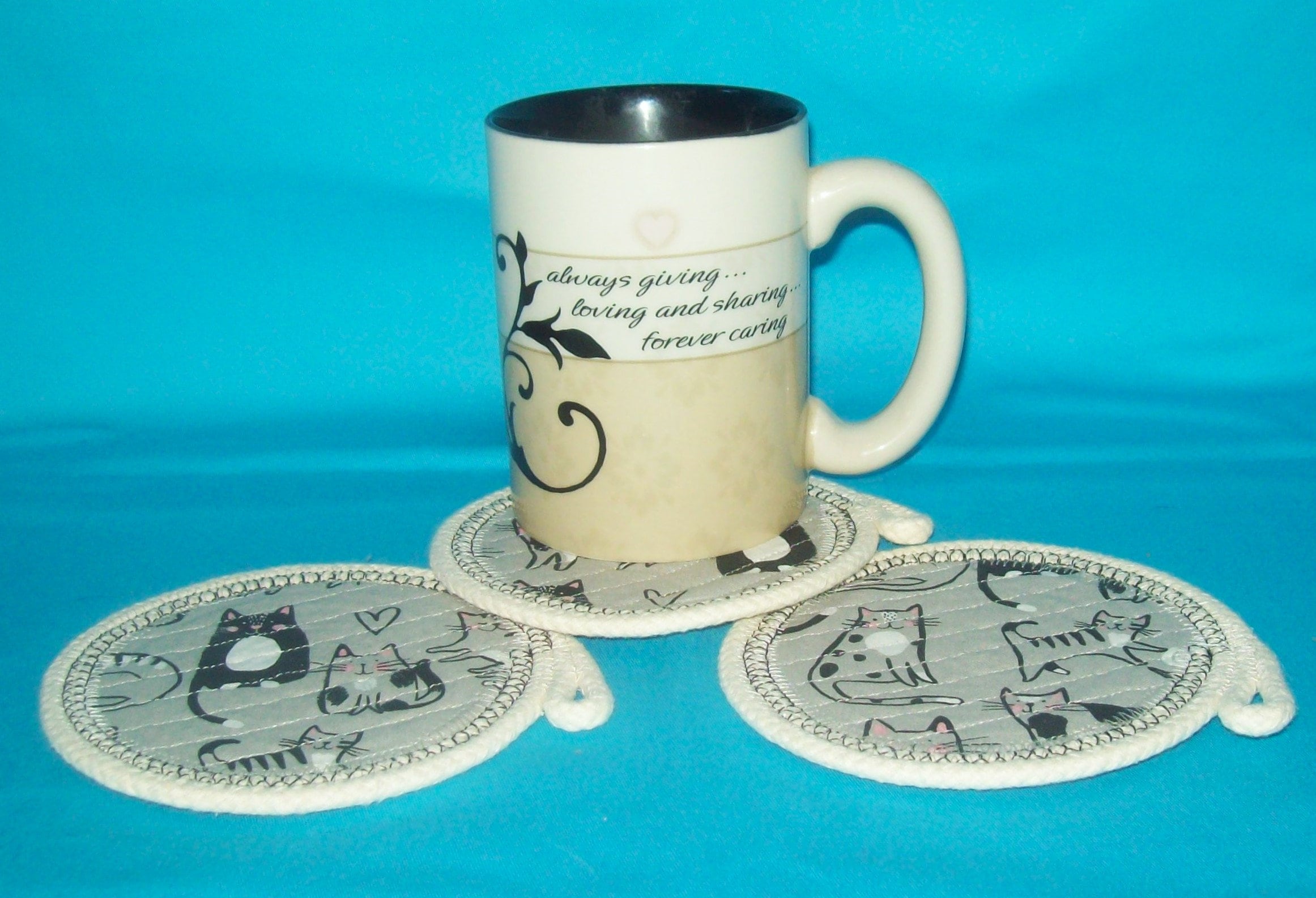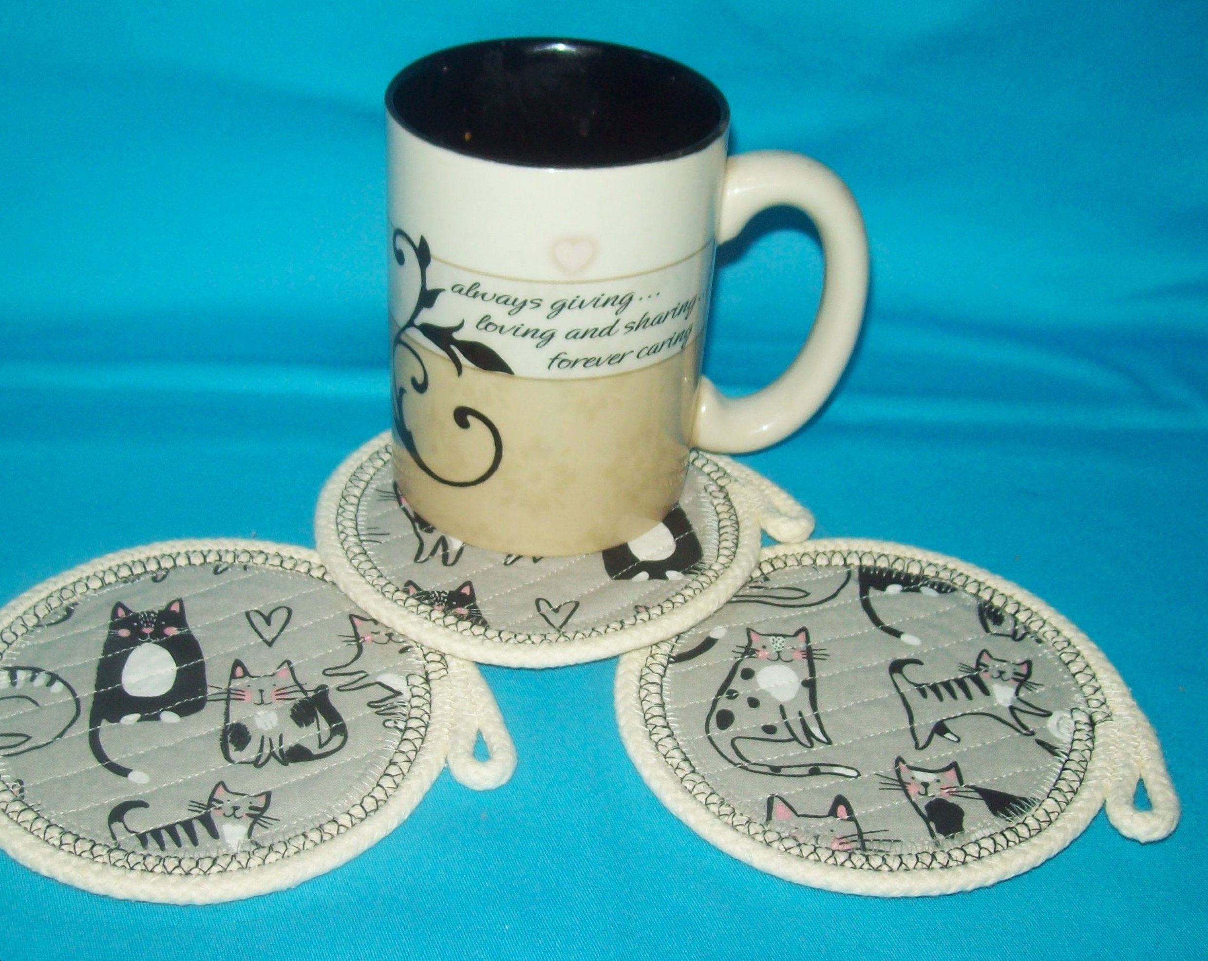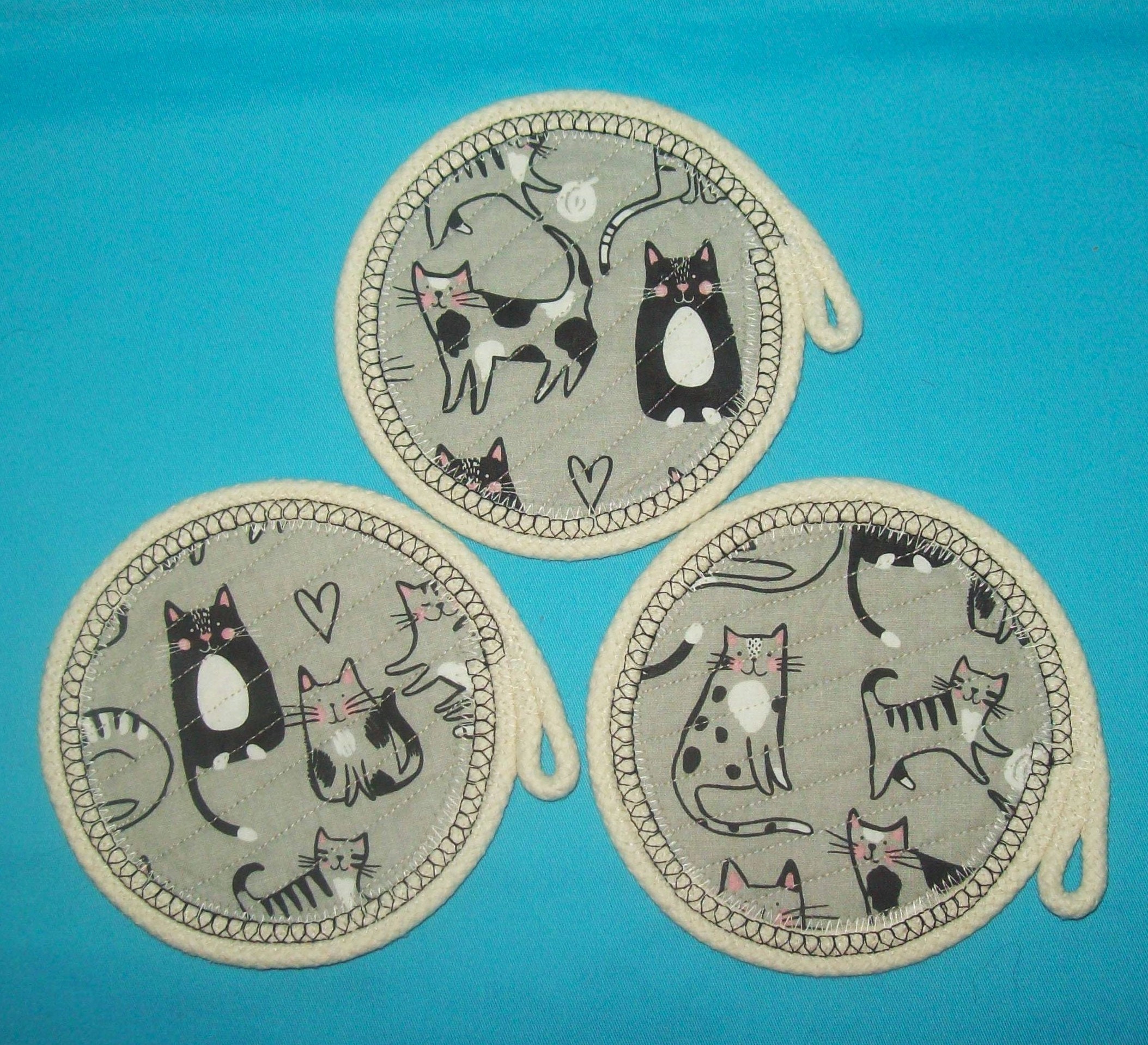 *The cat design fabric is attached to the rope base by using a channel stitch quilting style. By taking the extra time to do this, your coaster will not wrinkle or bunch up during use.