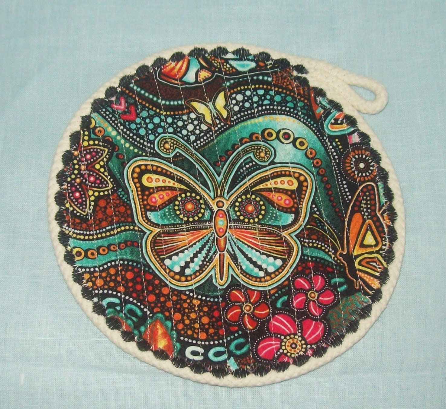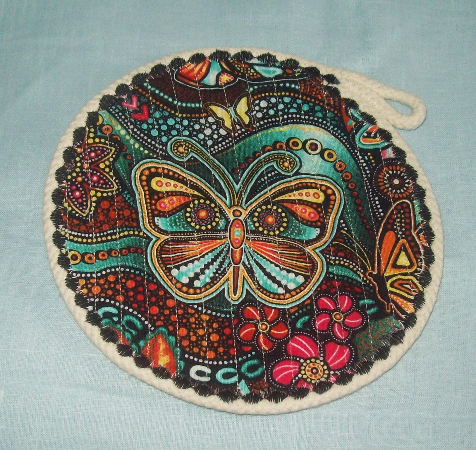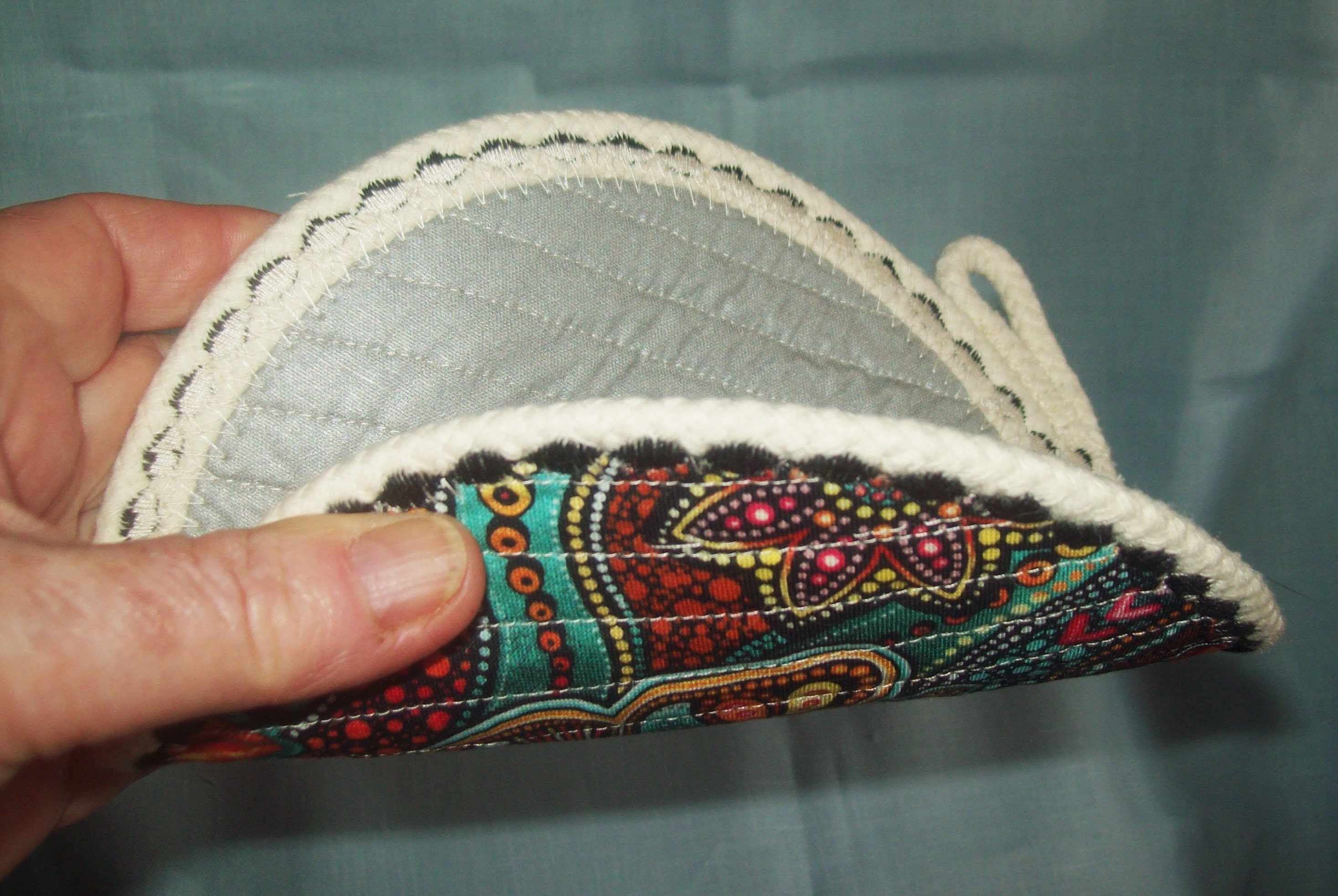 **This reversable rope trivet is soft and pliable and can be washed.