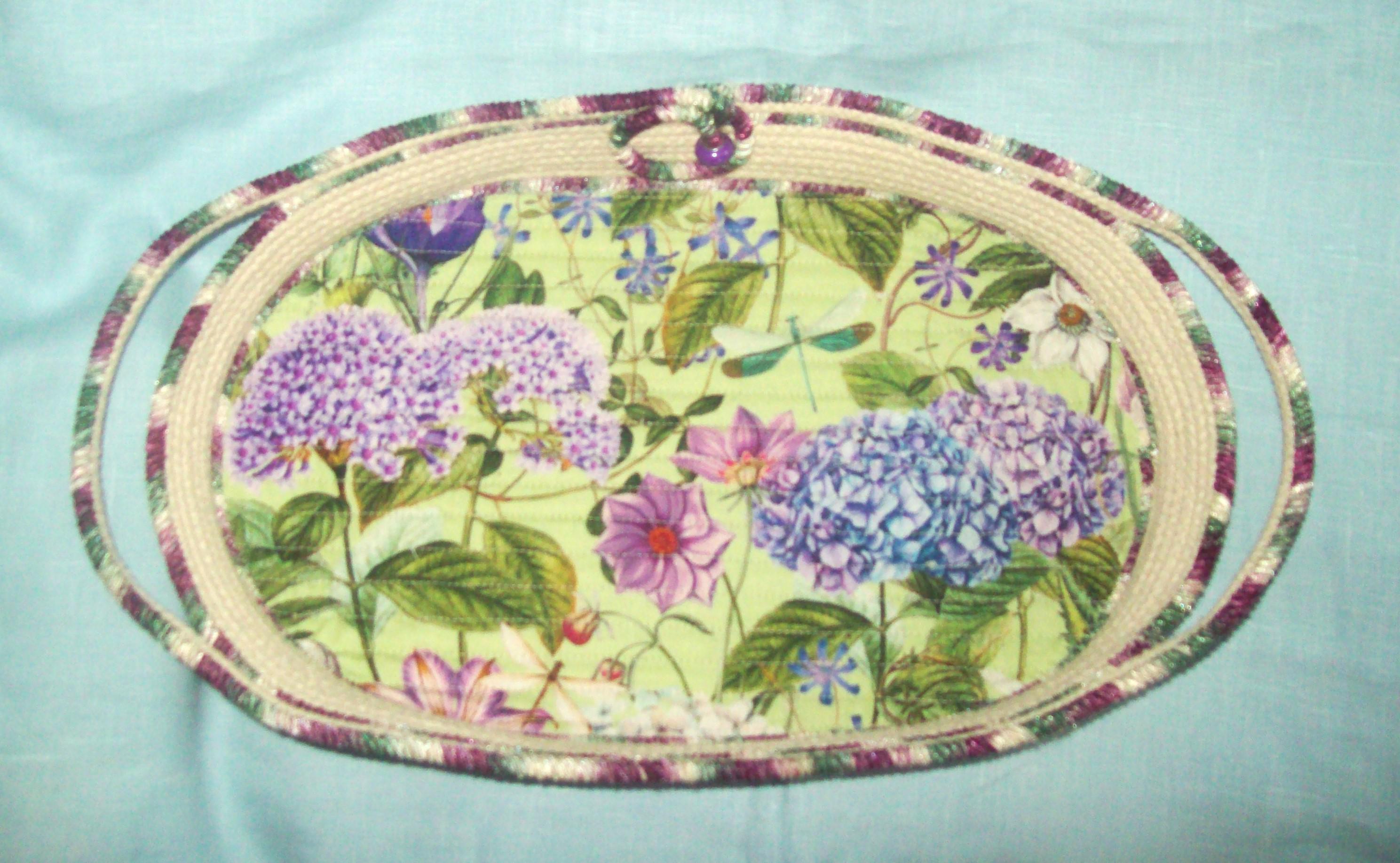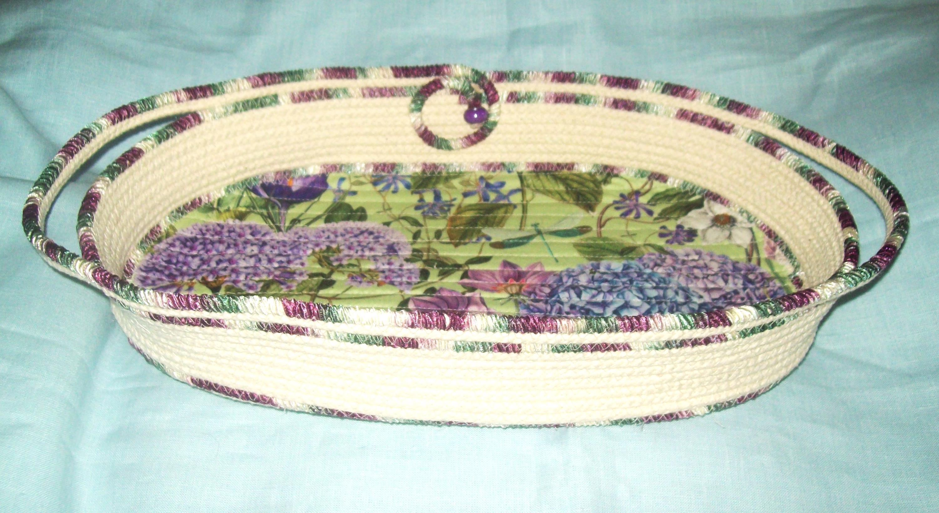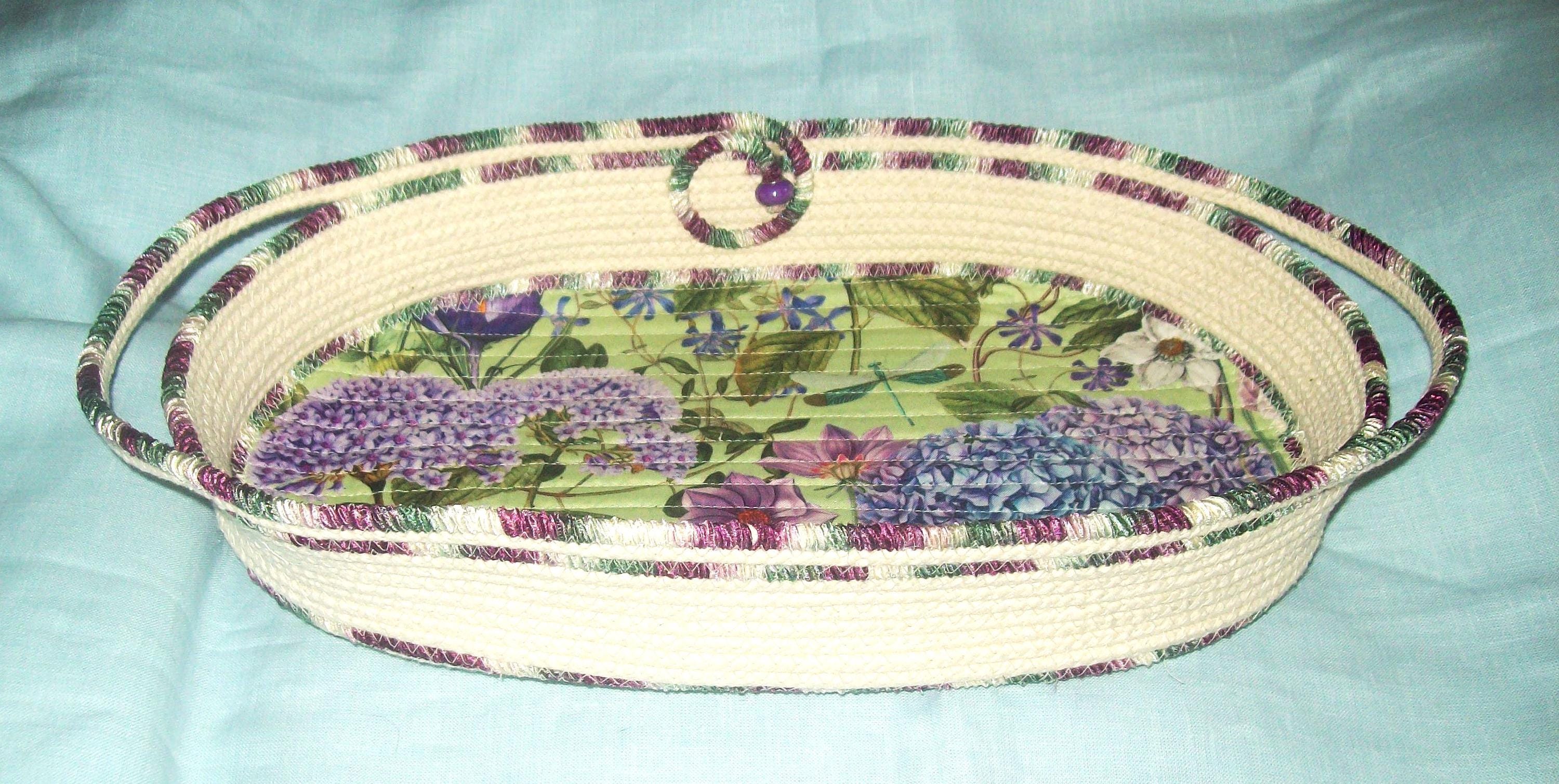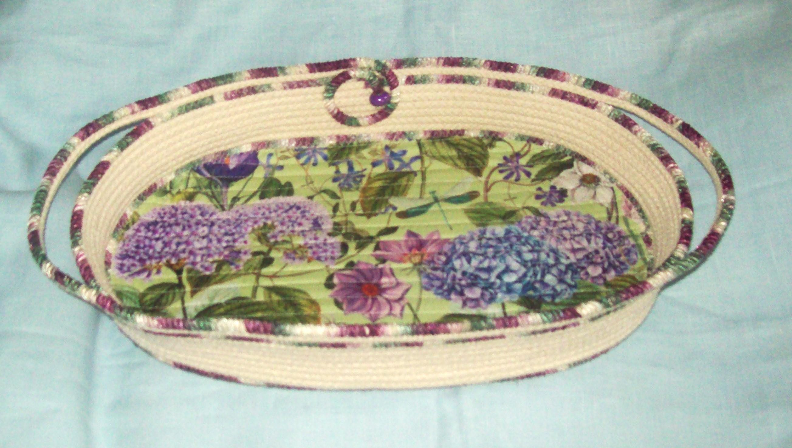 Floral Hydrangea Rope Bowl: Handmade Coiled Oval Cotton Centerpiece Basket