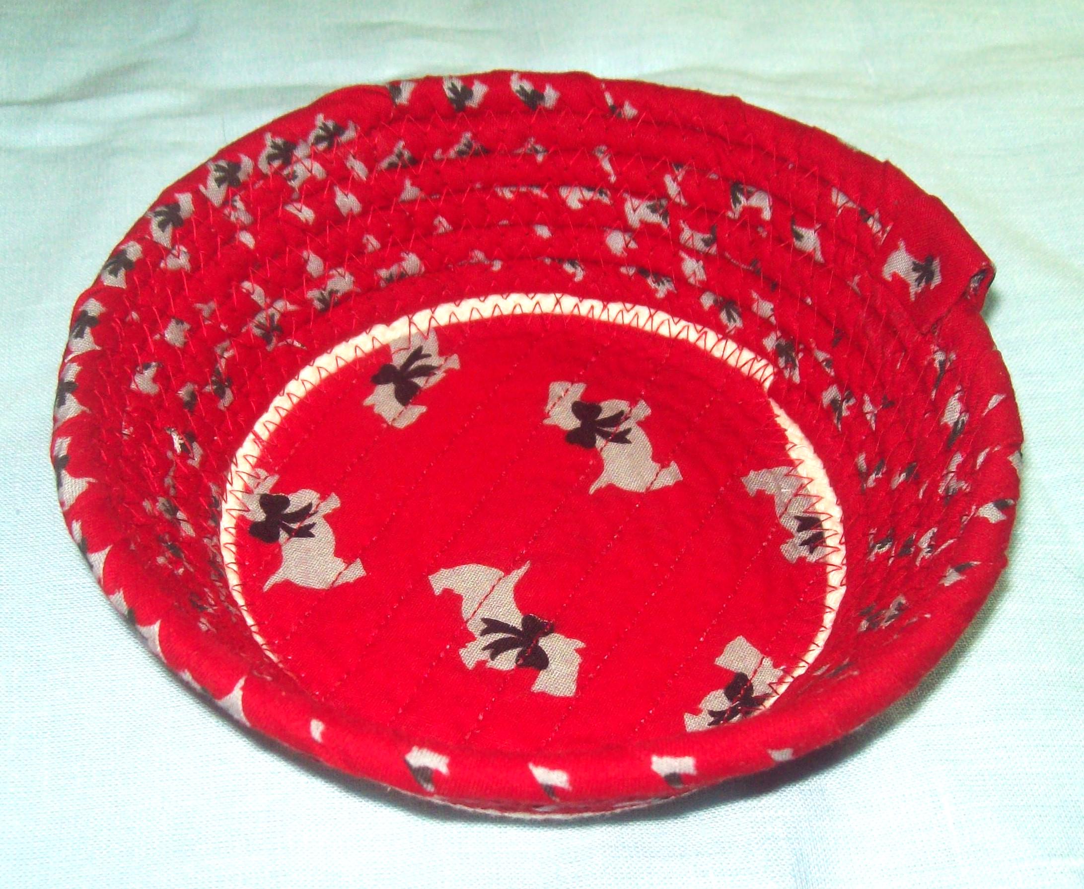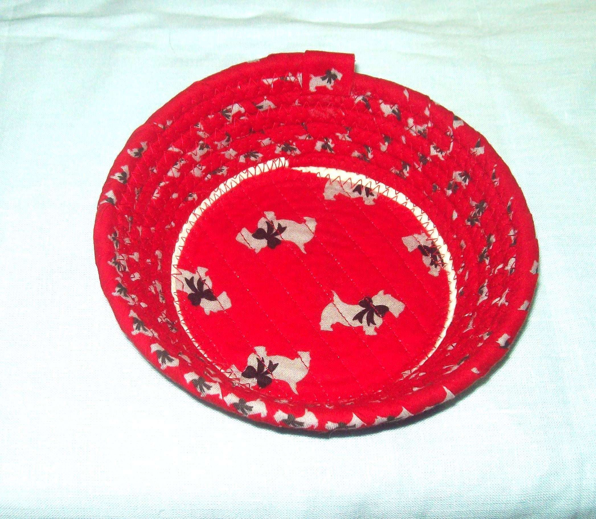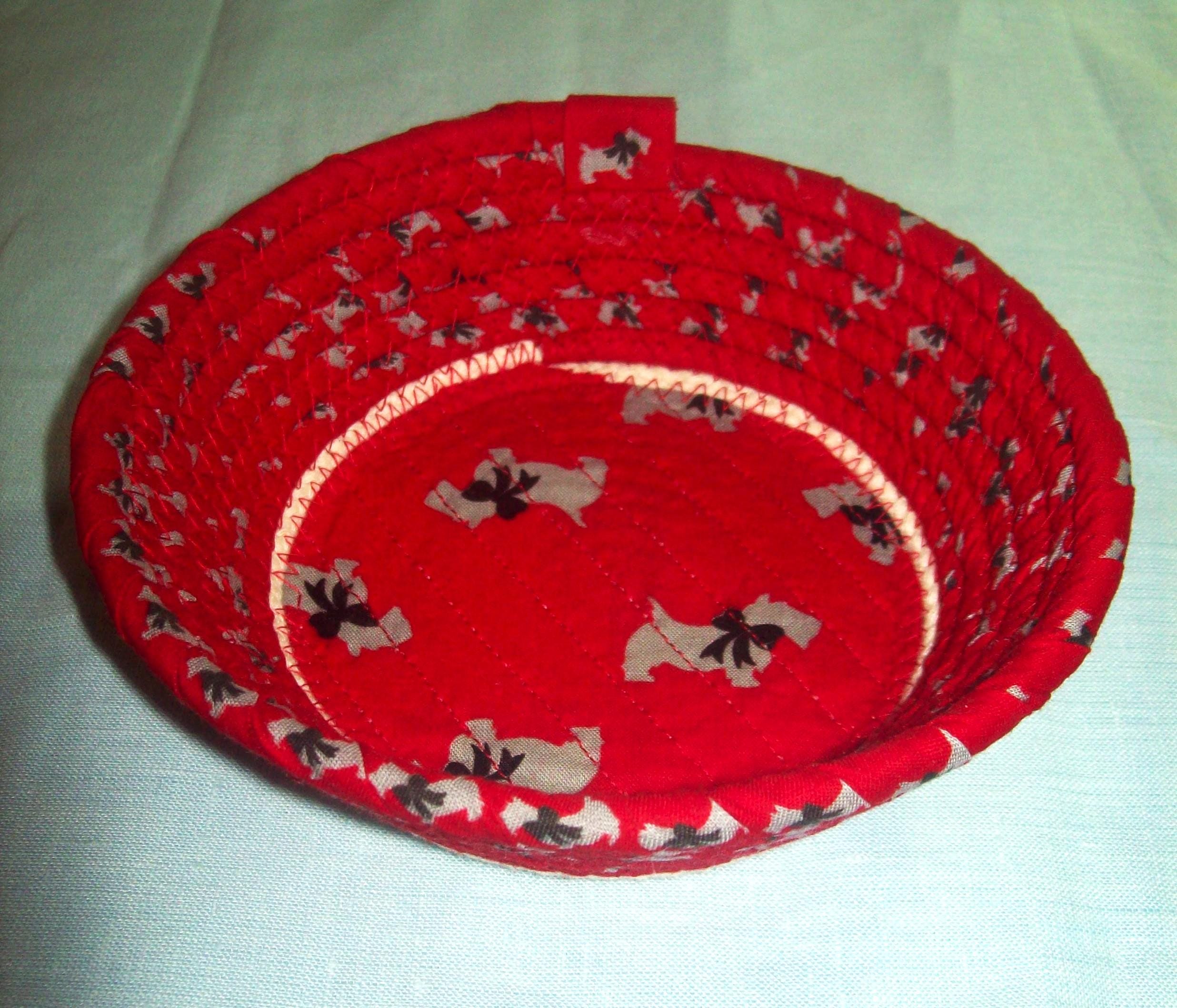 Festive and cute describes this fabric wrapped trinket basket. It can be gifted as a hostess "thank you", for a dog lover, or used in an entry way as a catch all for eyeglasses or keys.