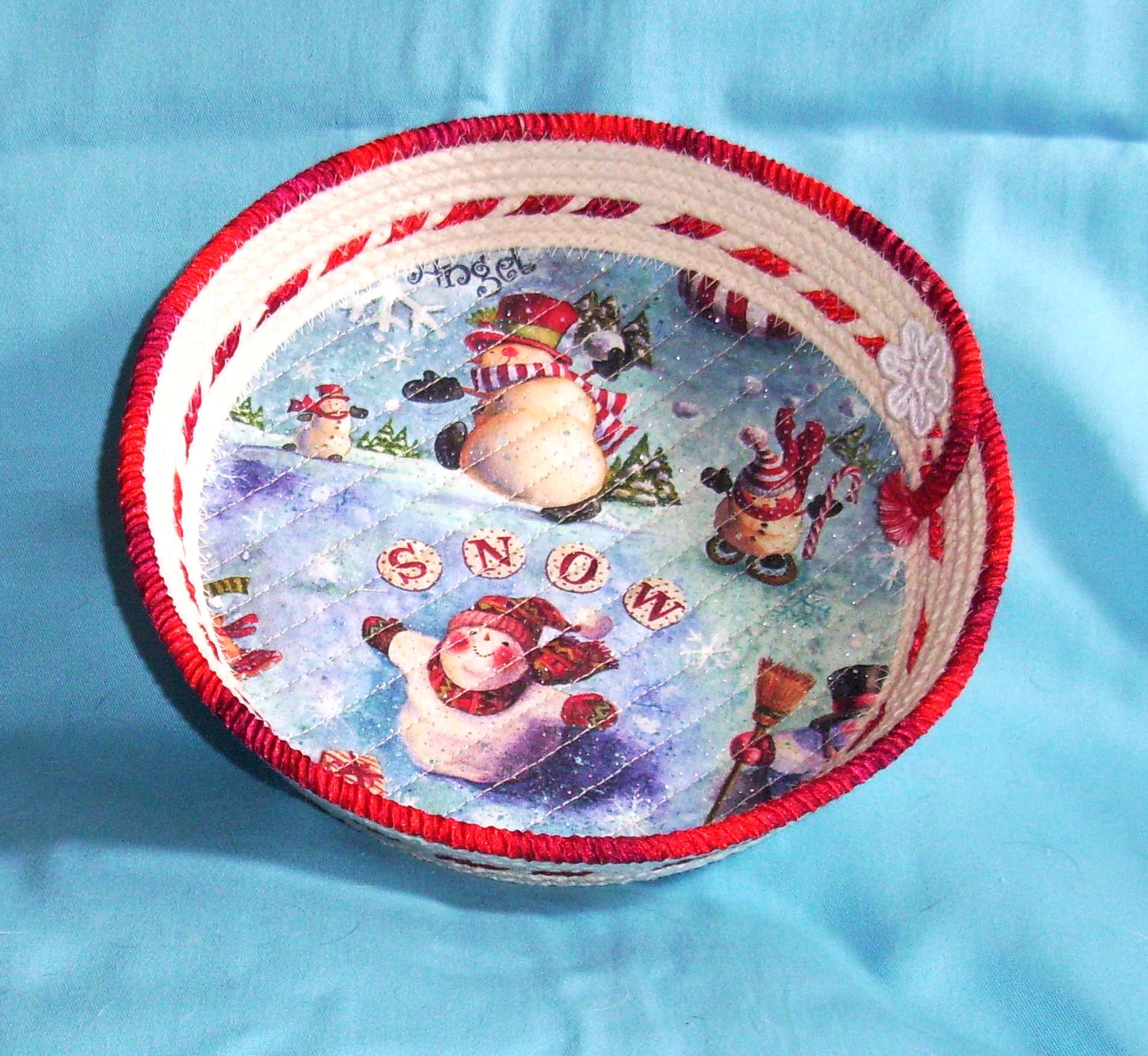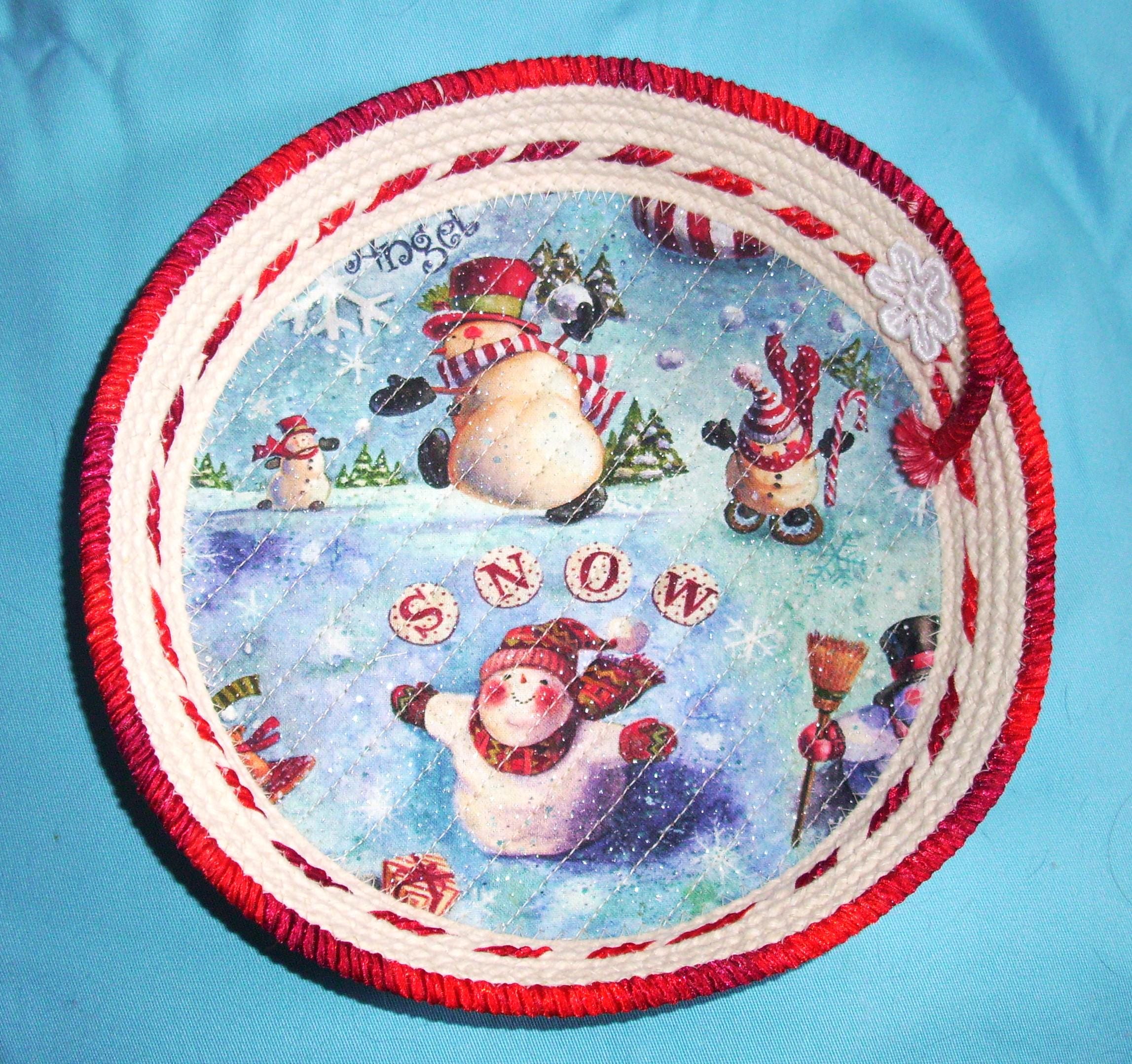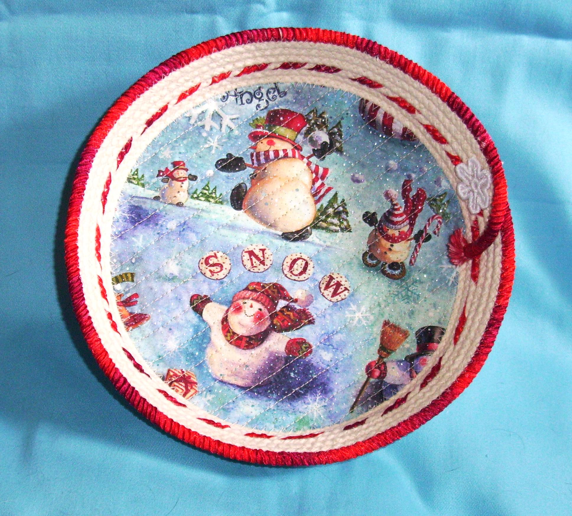 Snowman Rope Bowl SIZE: 8 1/2" rim 6 1/2" base 1 1/2" depth