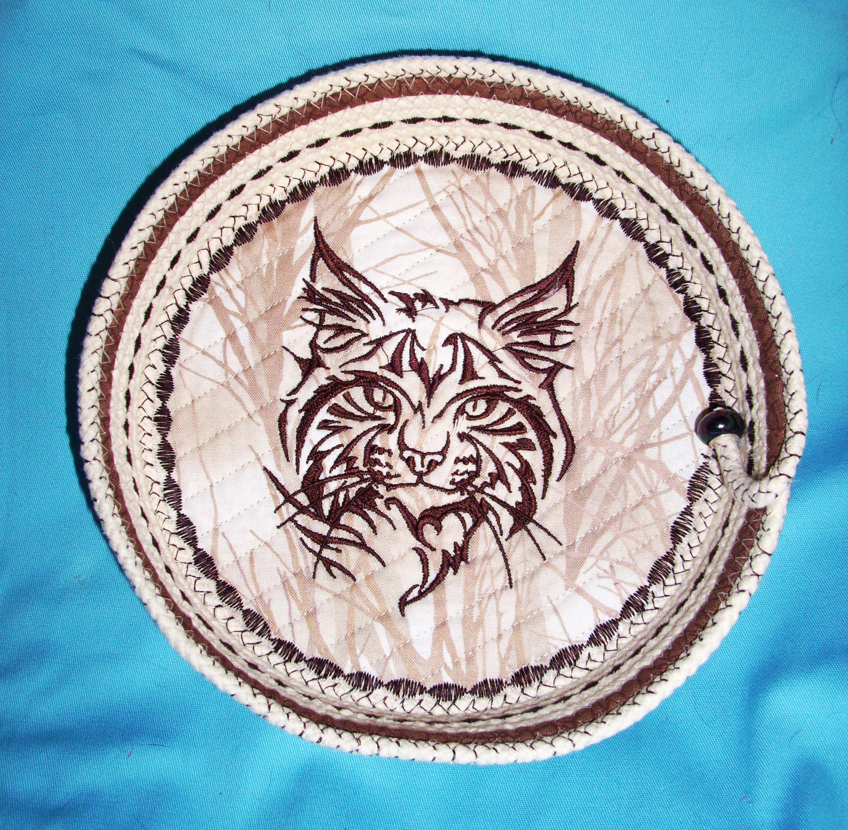 Lynx Embroidered Rope Bowl SIZE: 7 1/2" rim, 7" base, 1 1/2" depth