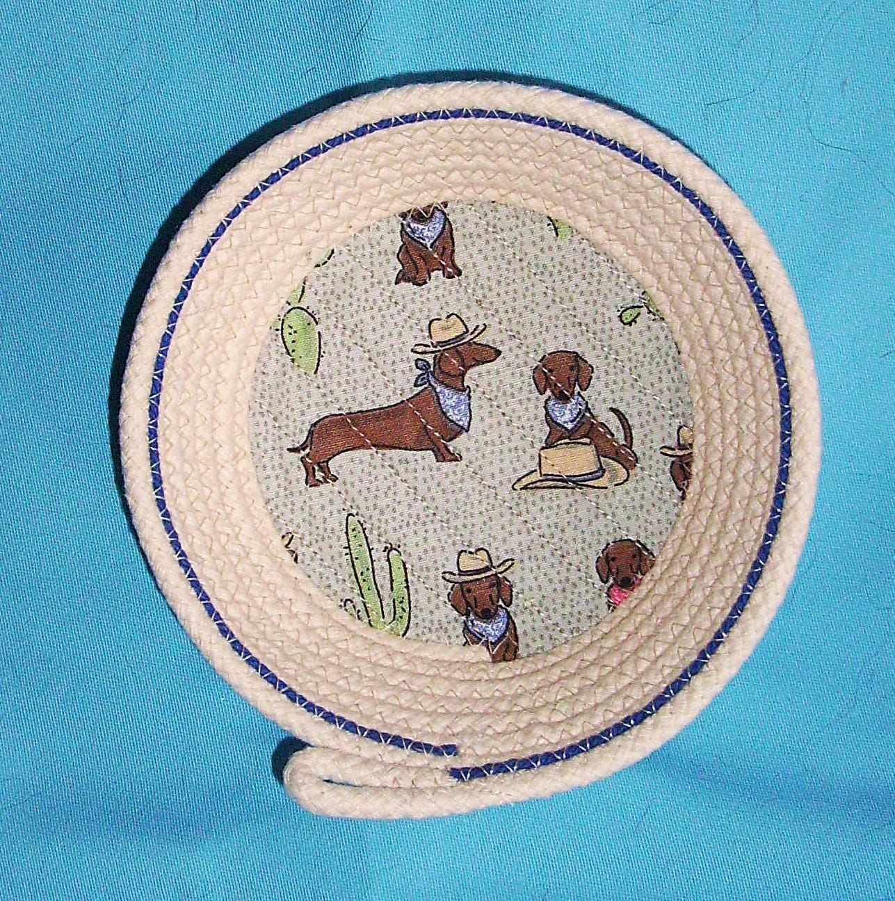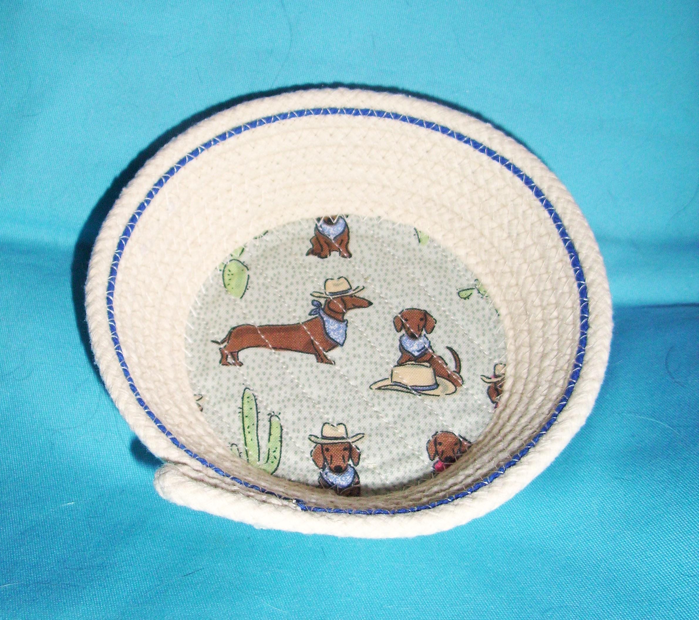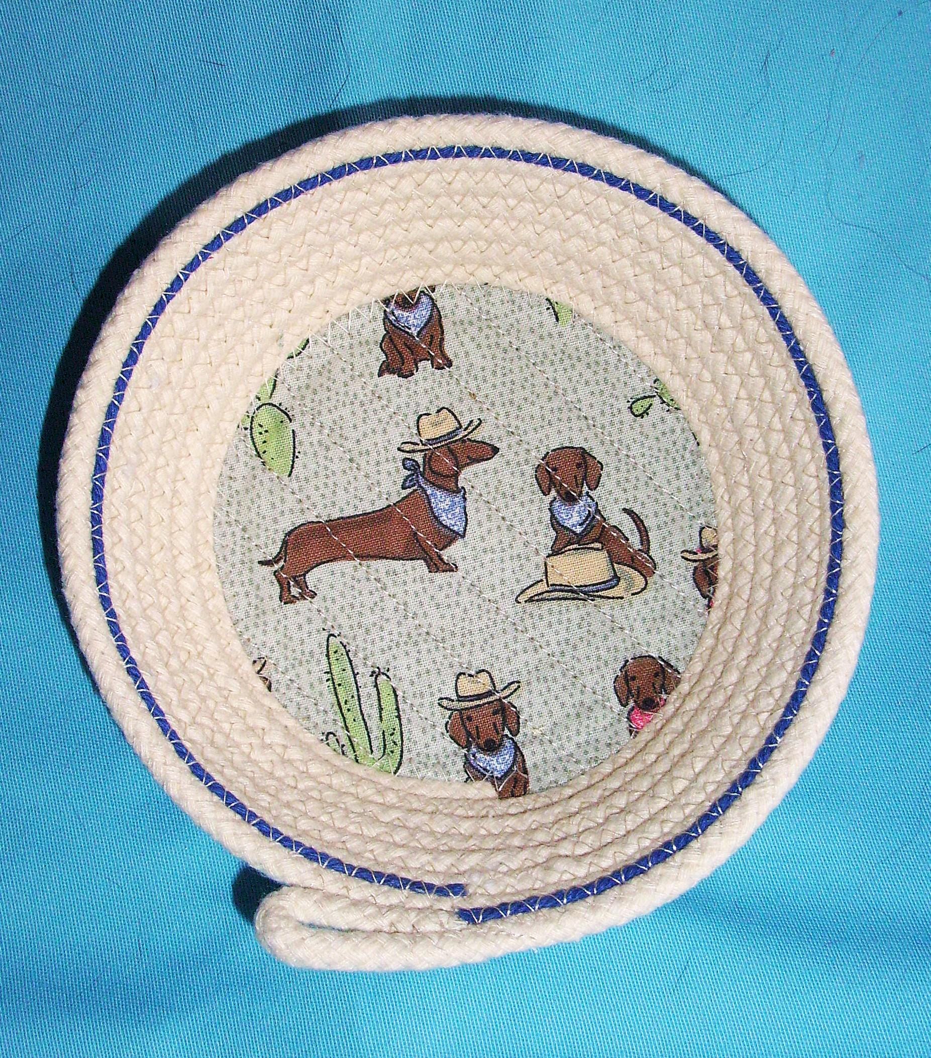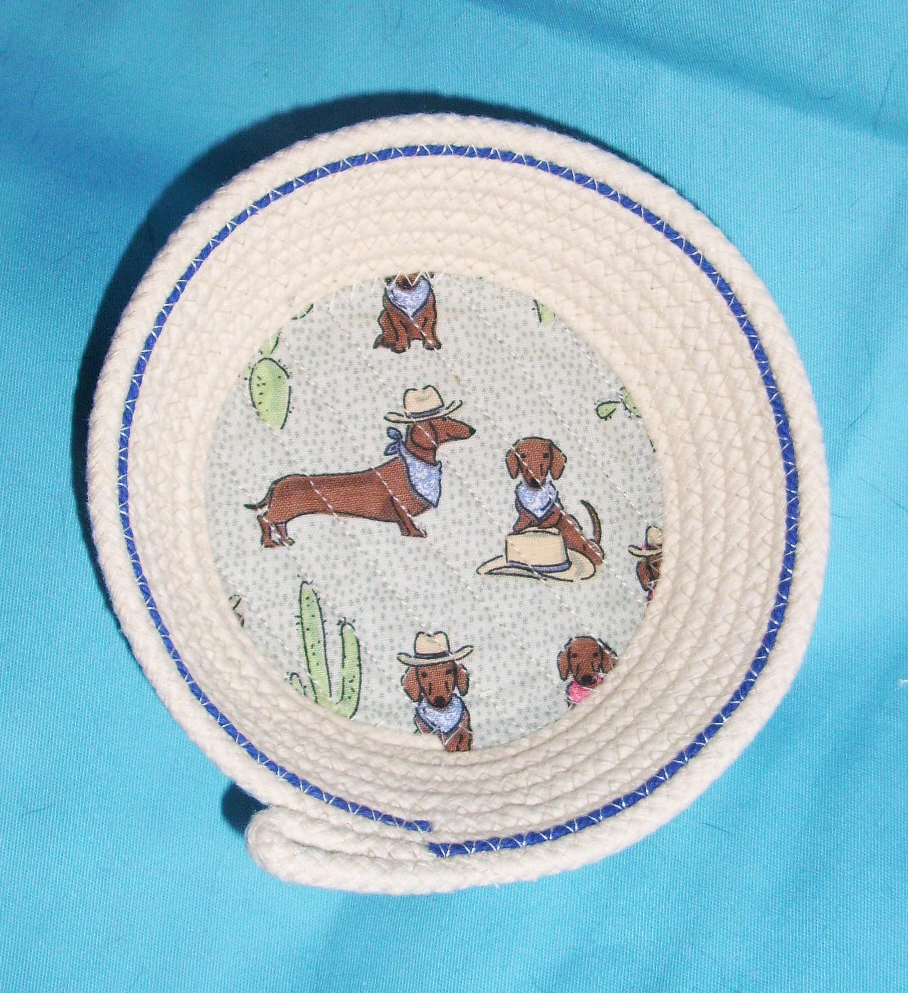 Wiener Dog Trinket Rope Bowl SIZE: SIZE: 6" wide at rim 4" wide at base 1 3/4" deep