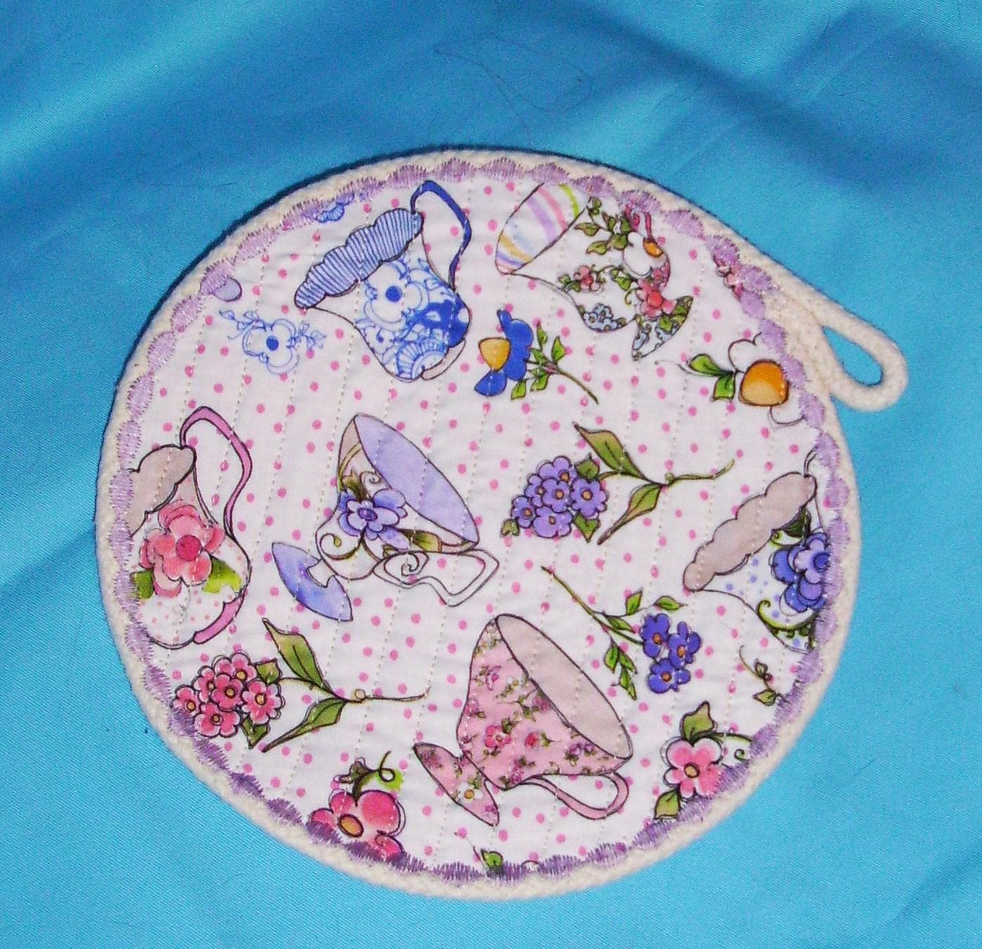 Floral Rope Trivet SIZE: rope trivet size" 8" diameter 1/4" thick