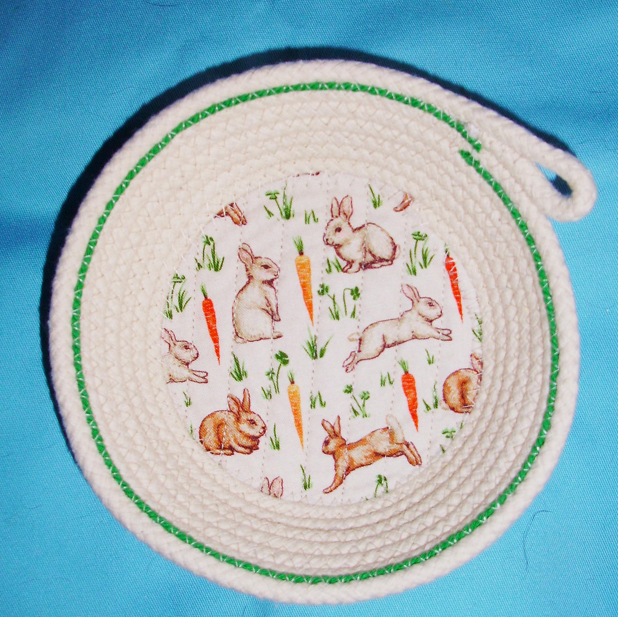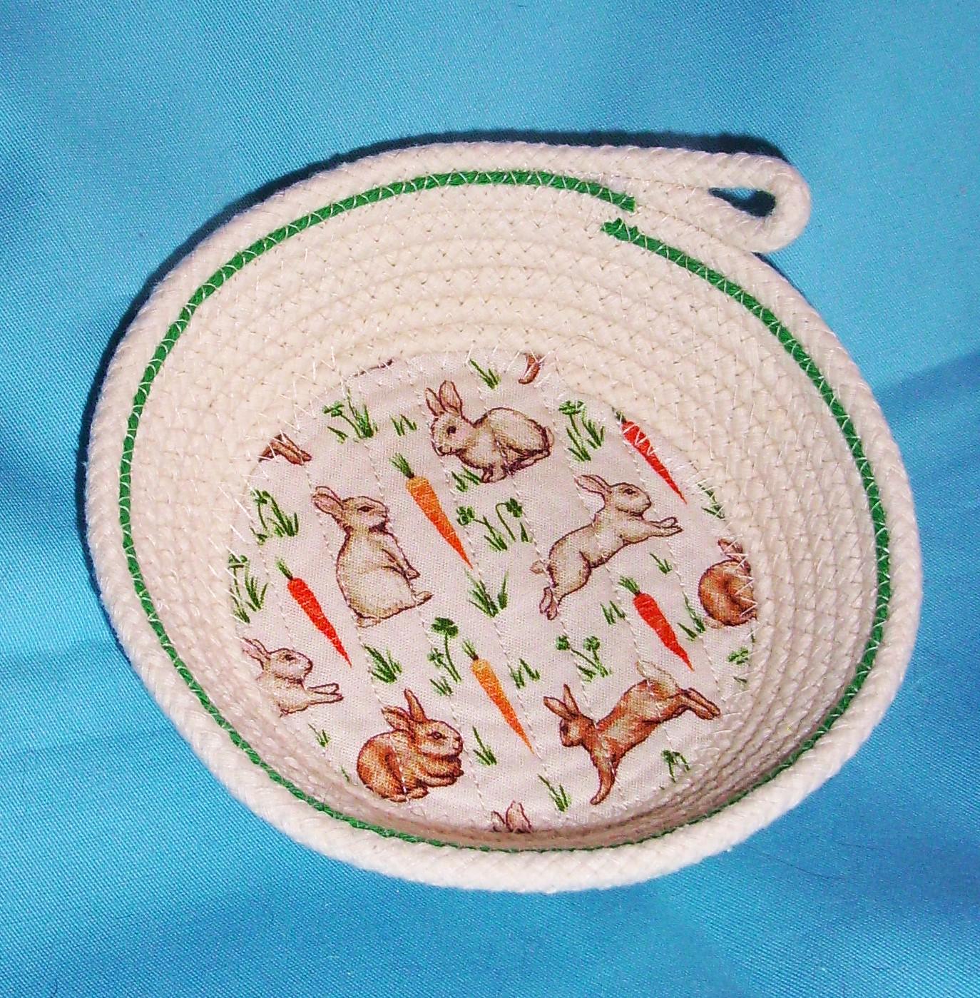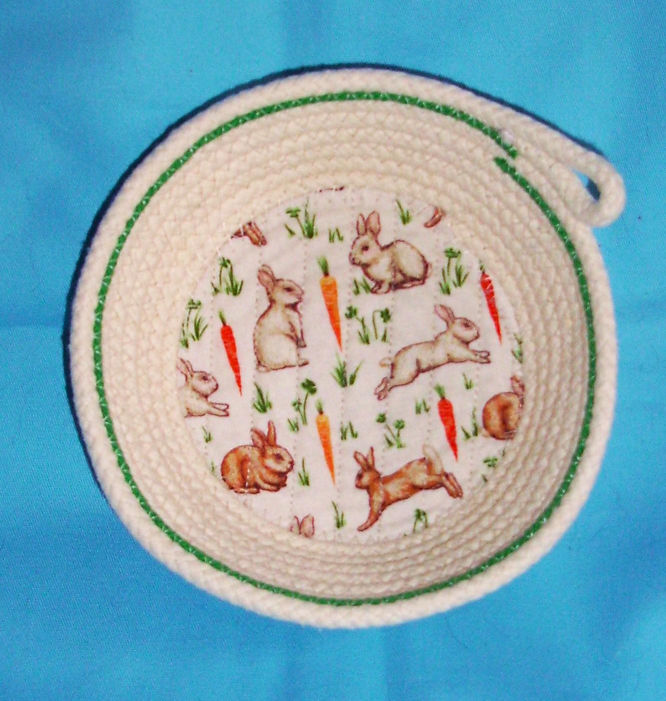 Bunny Trinket Rope Bowl SIZE: 4" base 6" rim 1 1/2" deep