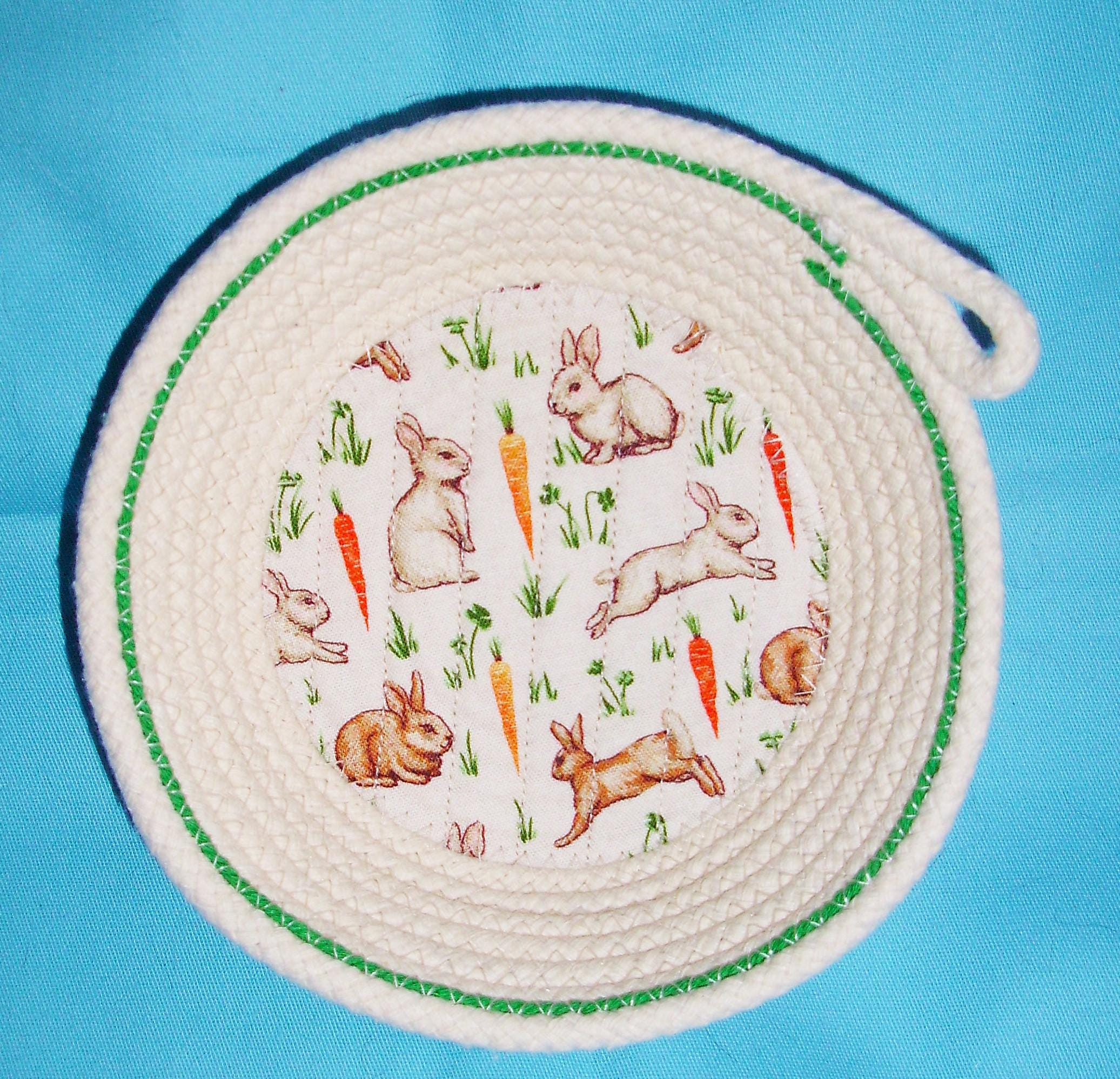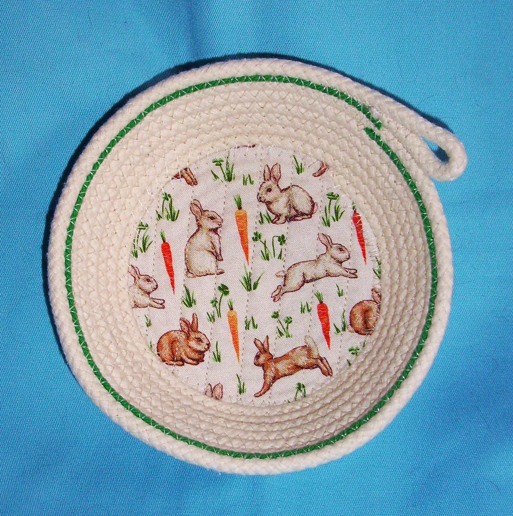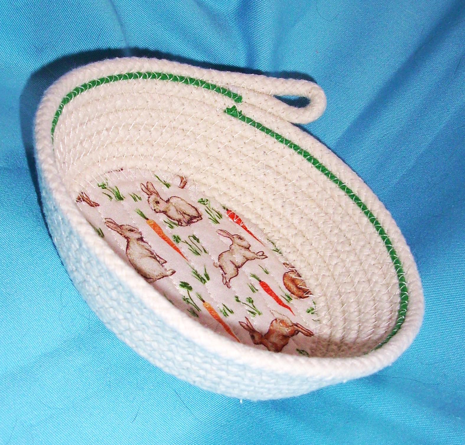 Bunny Trinket Rope Bowl SIZE: 4" base 6" rim 1 1/2" deep