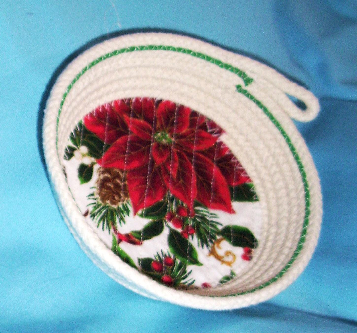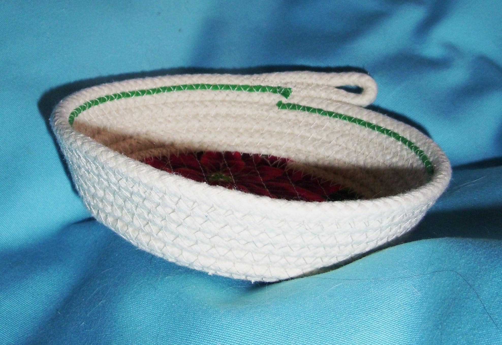 Festive hostess gift! Wrapped peppermints, cute jewelry, or a place to hold note cards give this rope bowl a special place during the holidays.