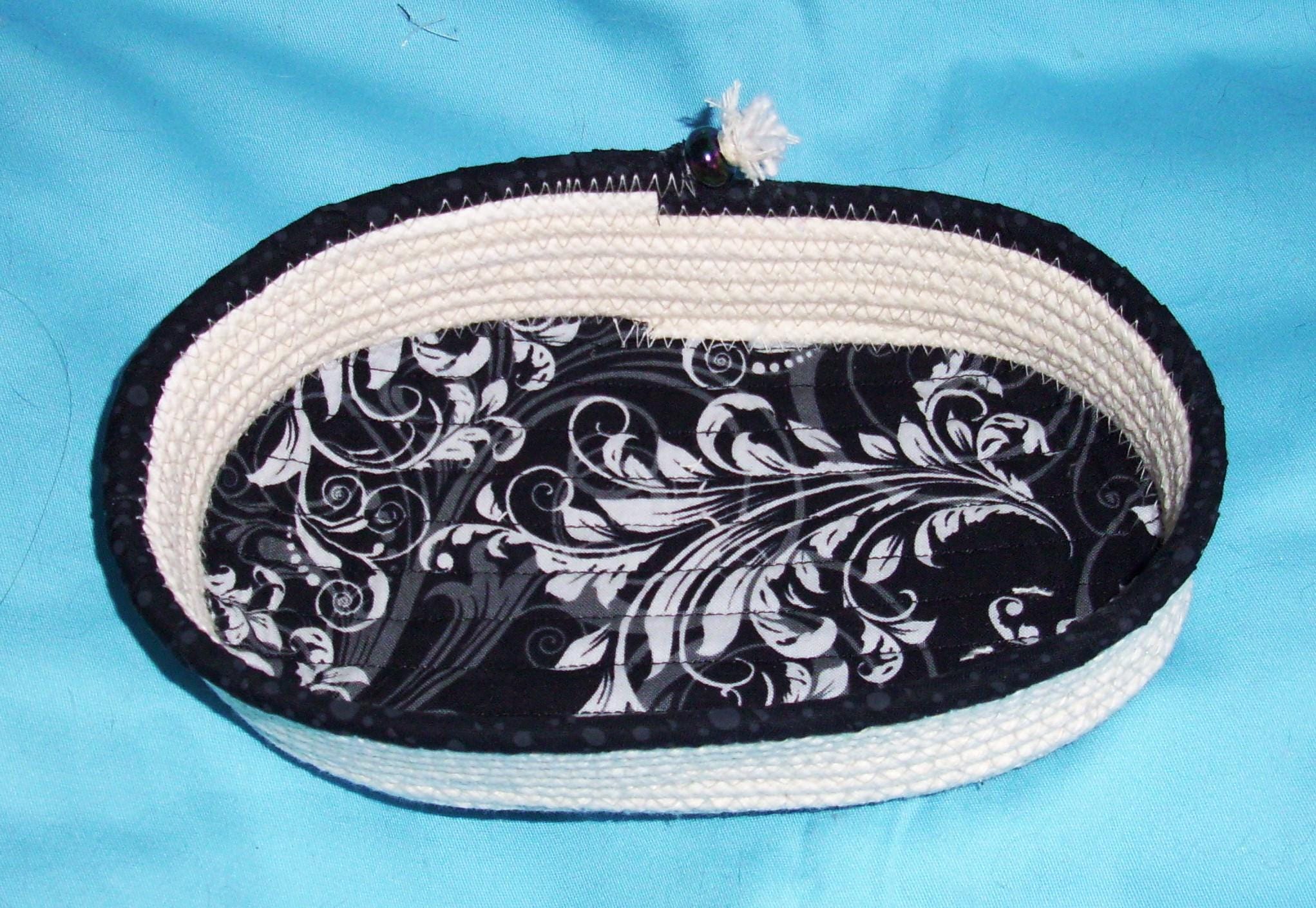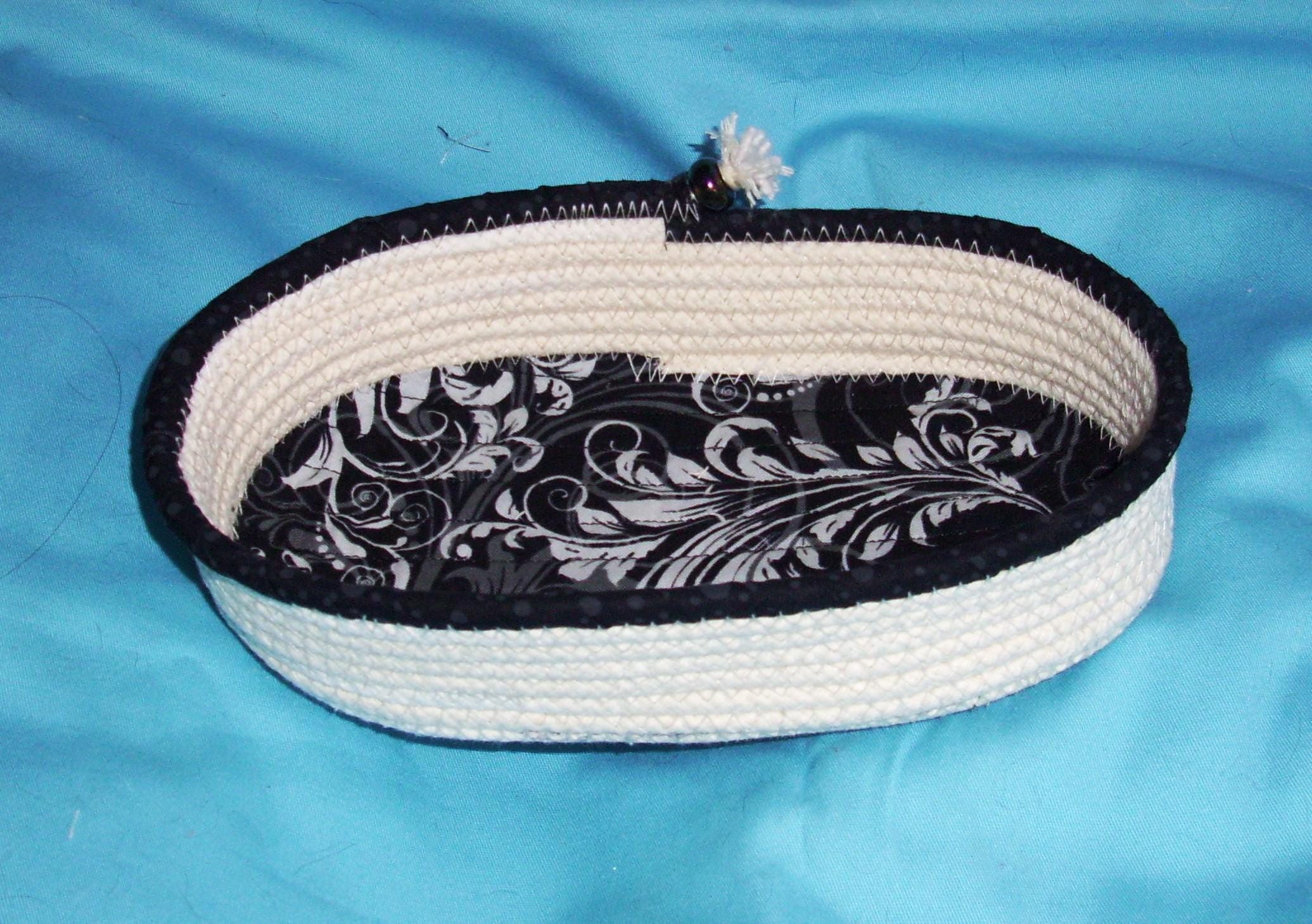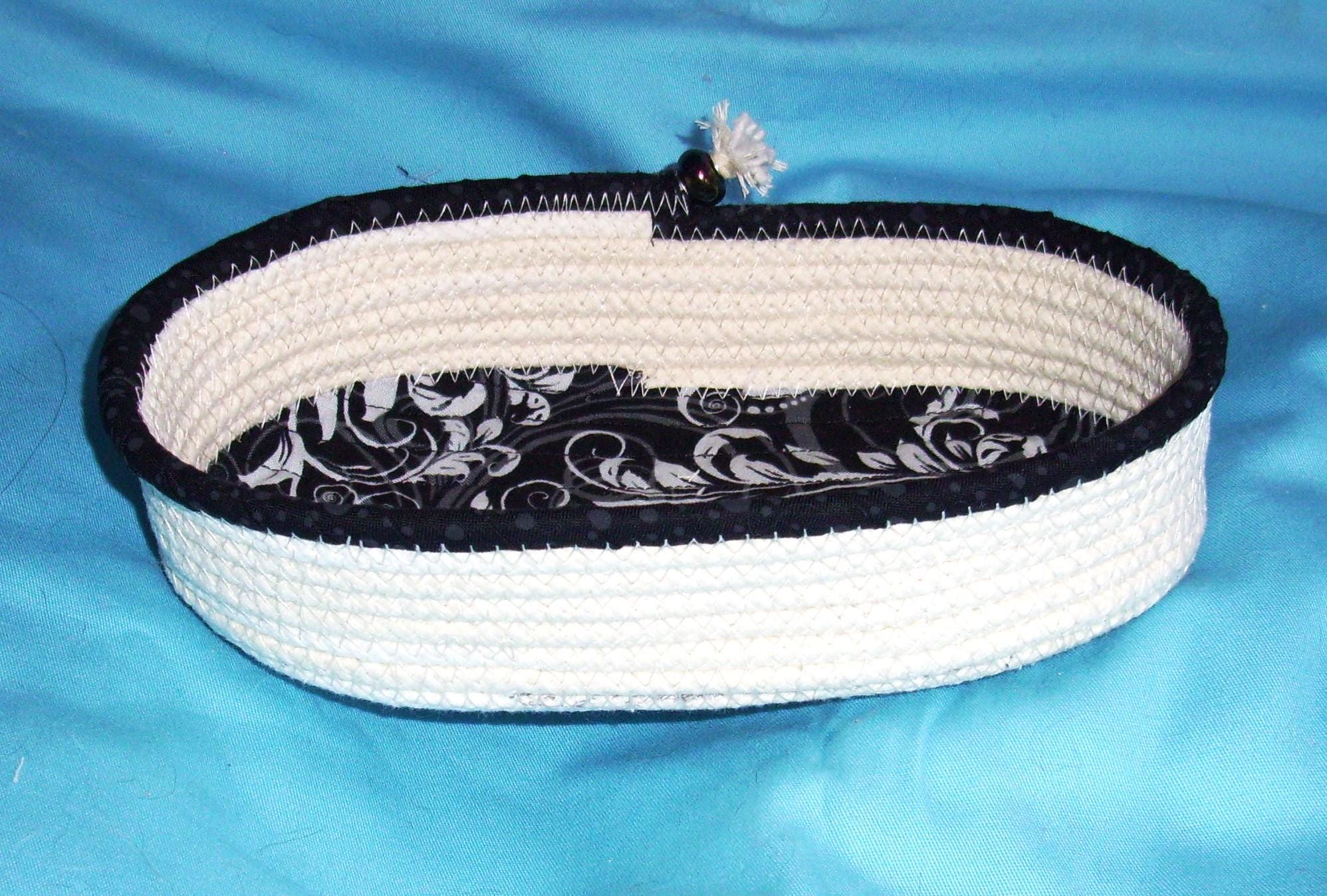 Oval Rope Bowl-Fabric Wrapped Basket-Handmade Coiled Sewn Container-Clothesline Decorative Cord Dish-Catch-all Accessory Organizer Bowl