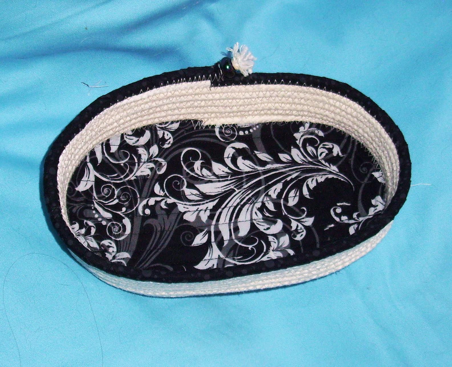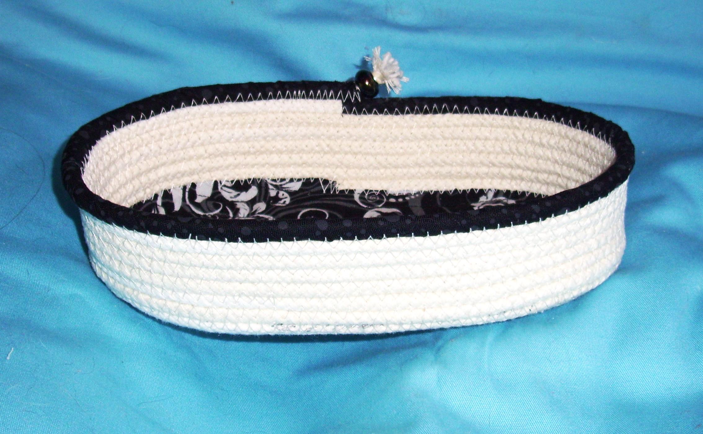 I have channel quilted the fabric to the rope coiled base for a more "finished" look.