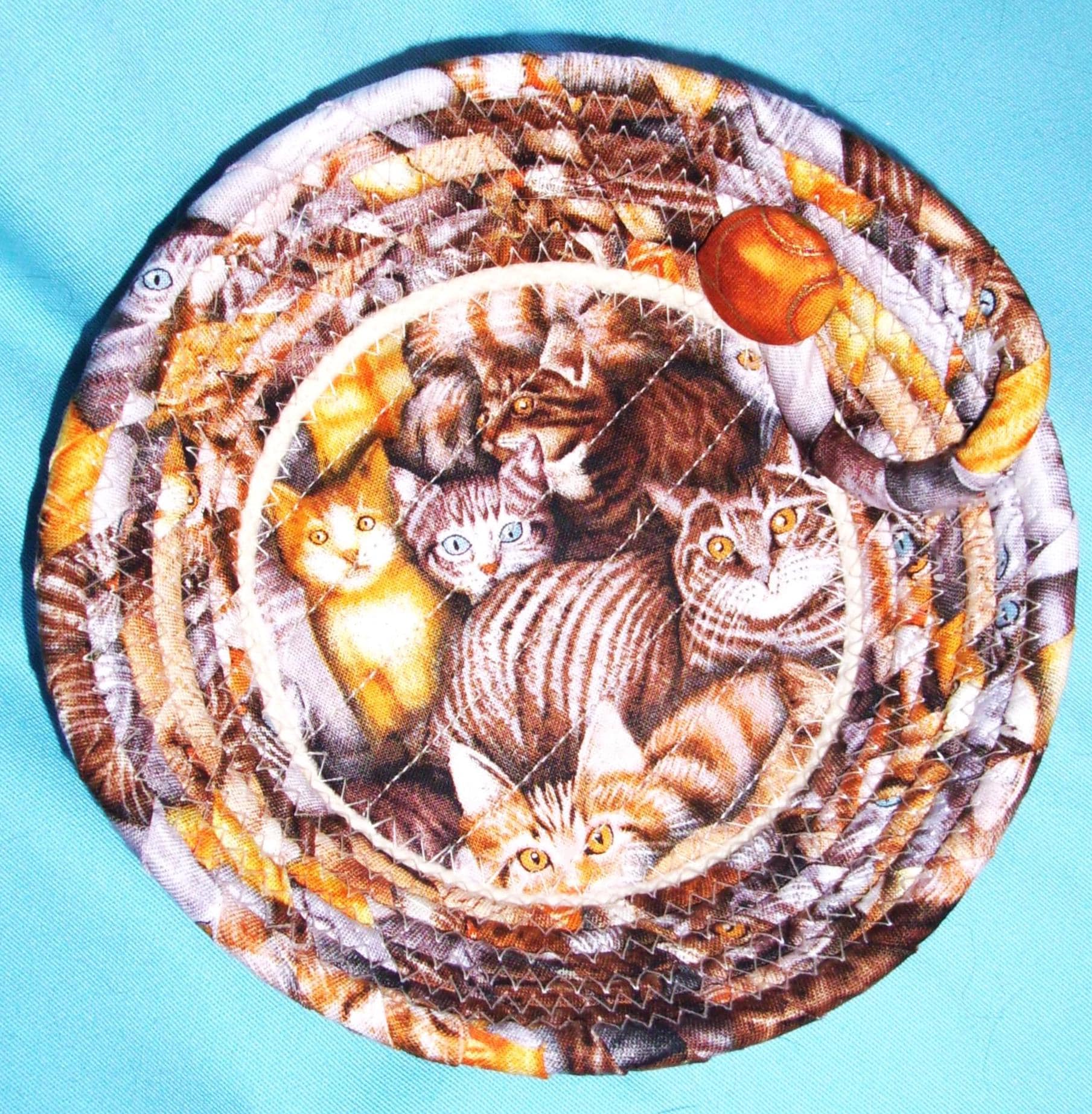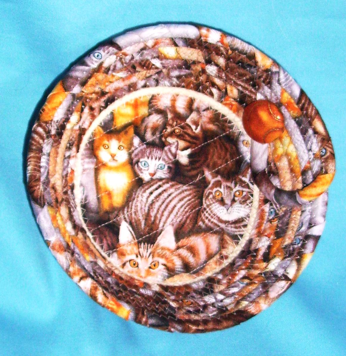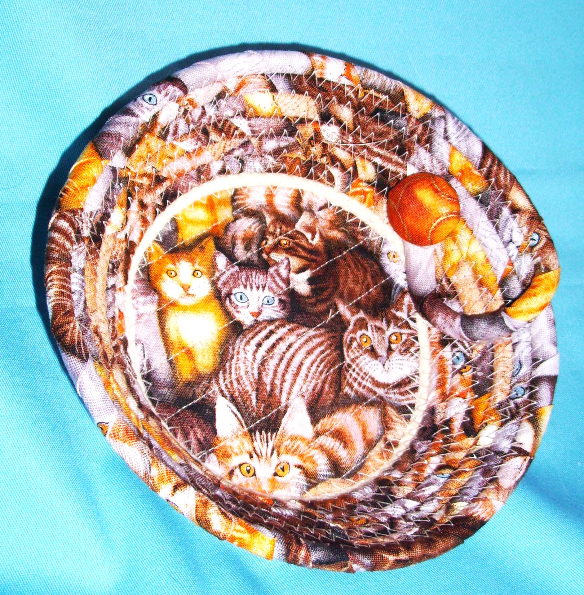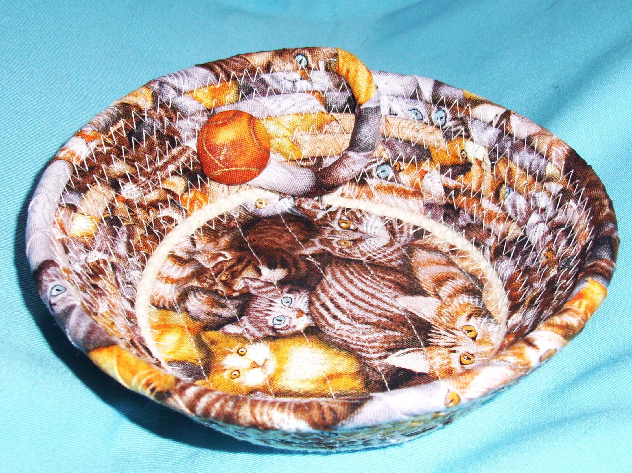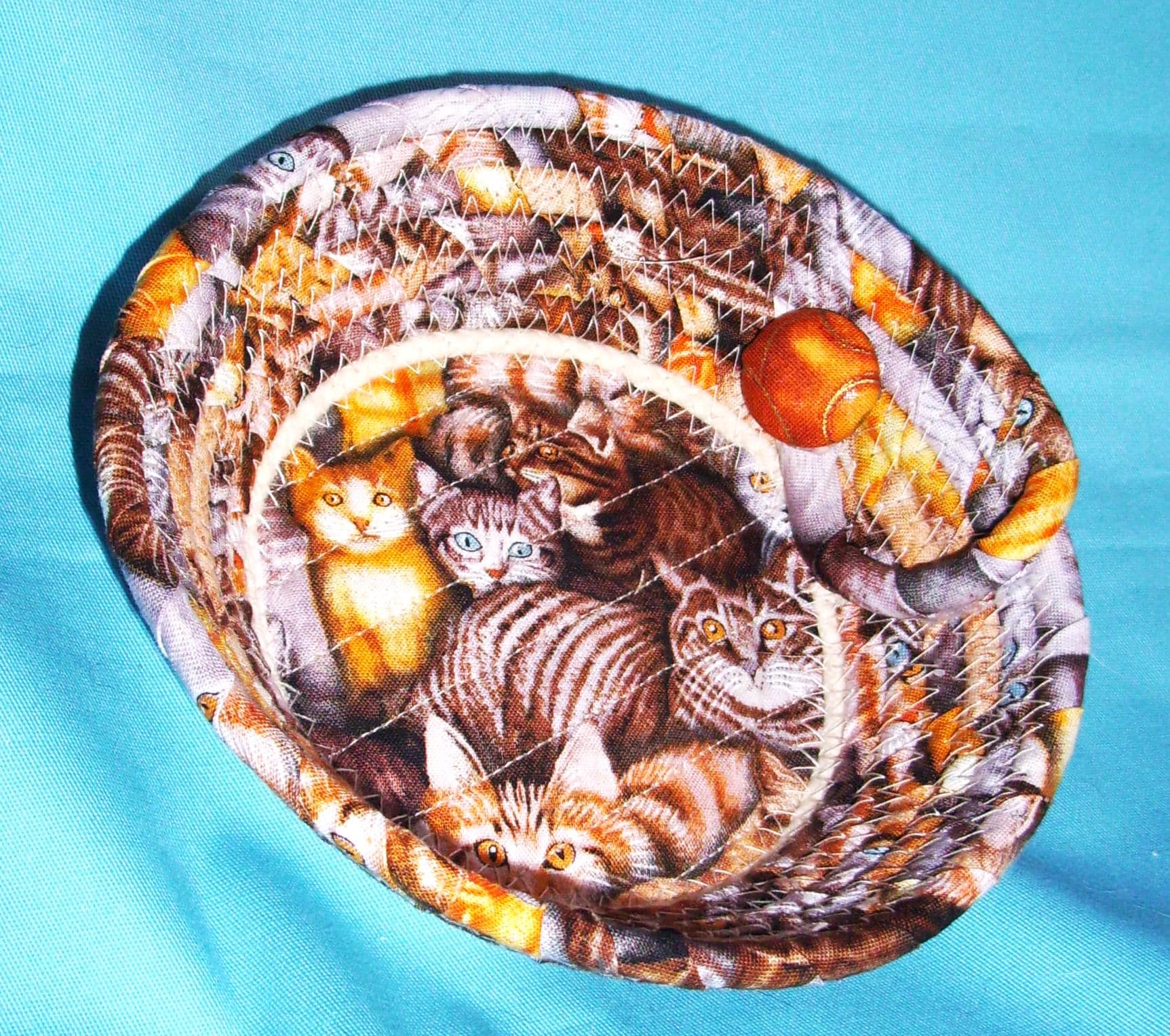 Many Cats Round Rope Bowl Size 6" rim, 4" base, 2" depth